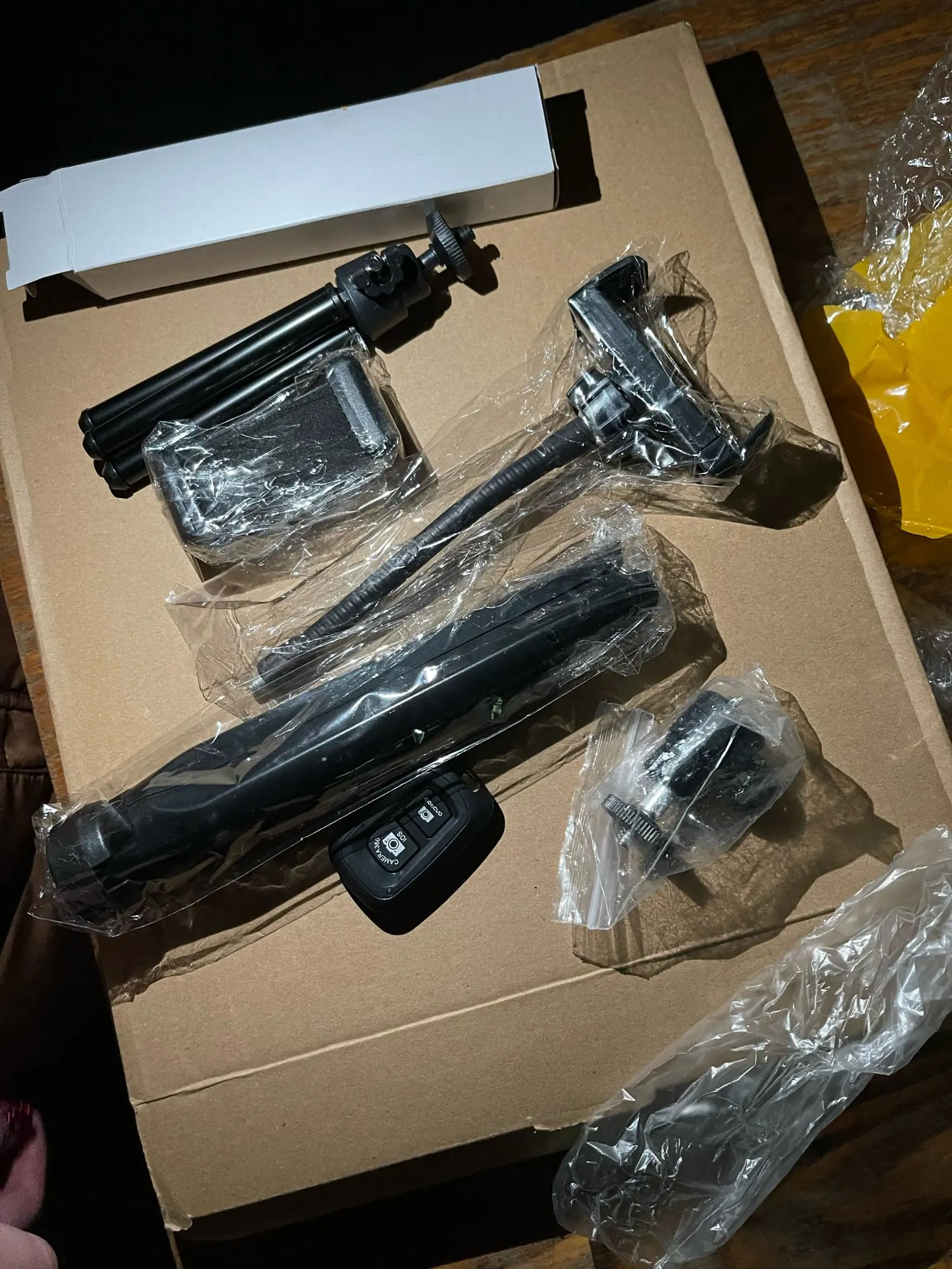 Получил как и было заявлено через 6 дней. Комплектность в соответствии с заказом: - лампа (качество изготовления хорошее); - два держателя (для телефона и камеры); - влютуф пульт (с батарейкой и кнопкой Off/On); - штатив 1,5 м (качество изготовления хорошее, не сыромятина и не гаражная сборка, стоит устойчиво); - запасной держатель. Упаковано в отдельные коробки (лампа и два держателя - 1 коробка, штатив 1,5 м - 2 коробка). Лампа горит проверил все режимы, пульт к телефону цепляется быстро, работает.