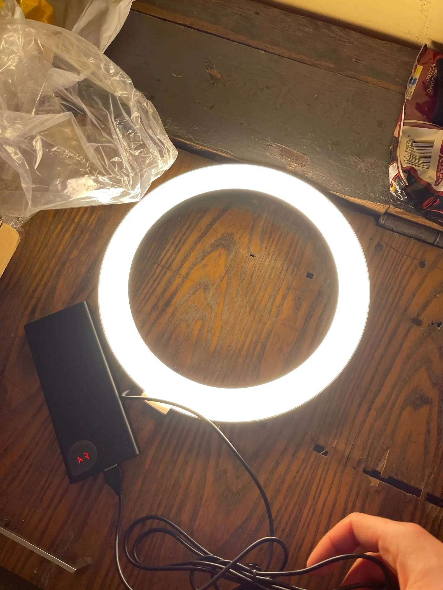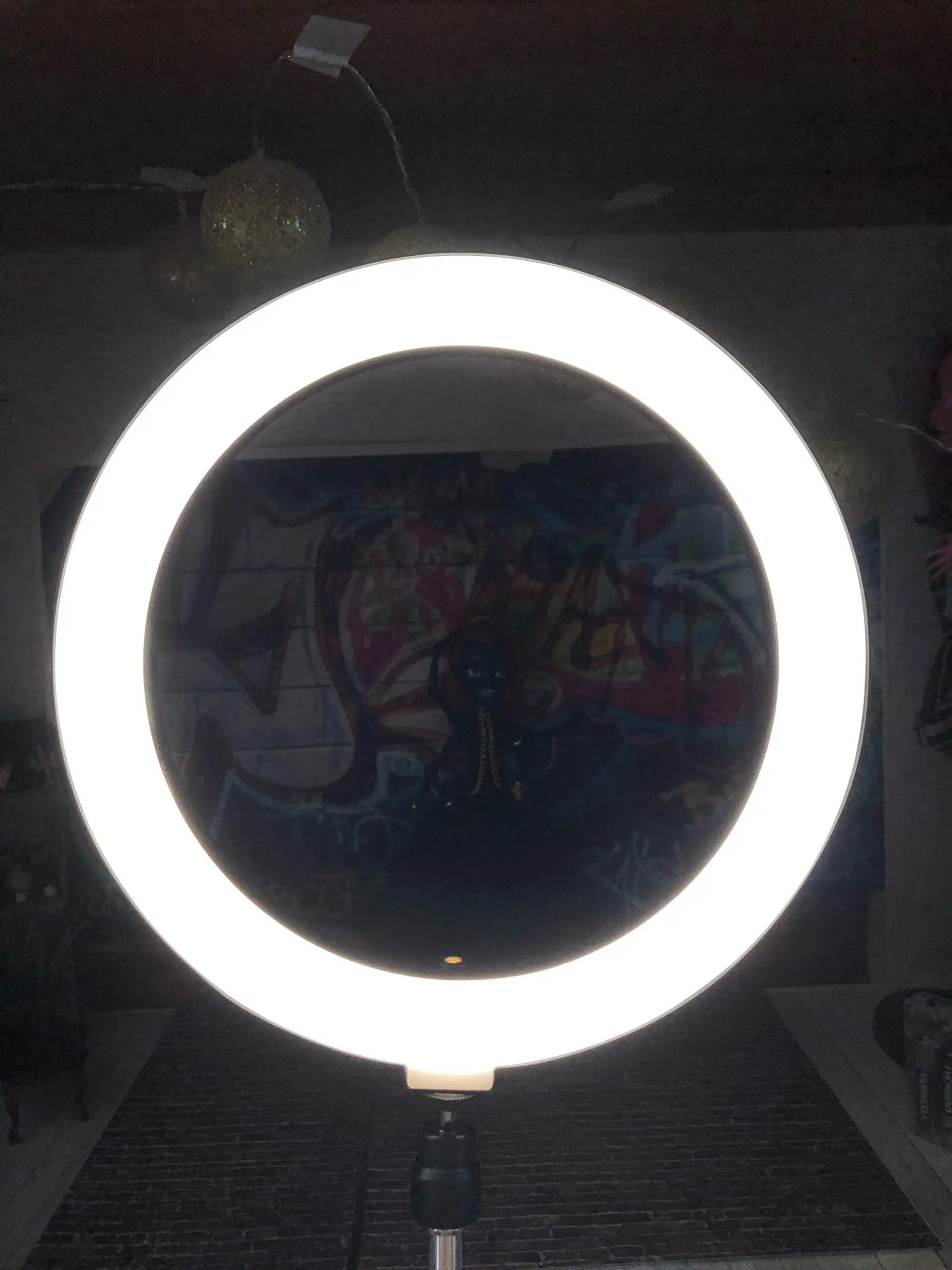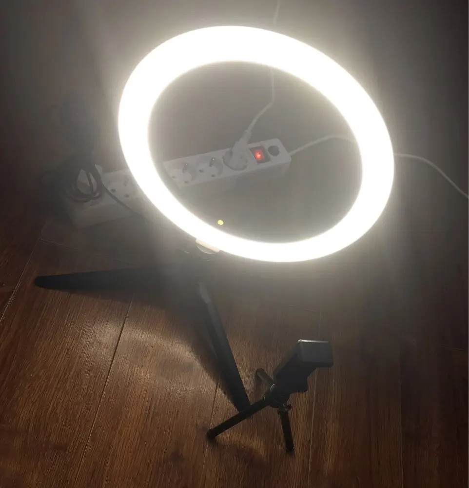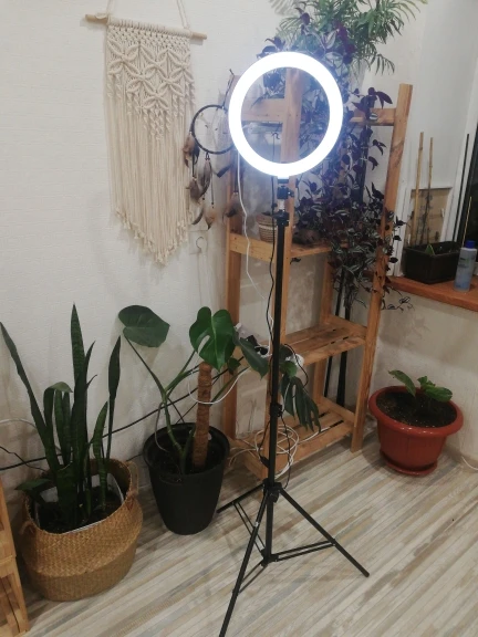 Отличная кольцевая лампа, свет трёх режимов от белого до желтого, все крепления работают, держат, лампа отлично крепится на стандартный штатив-трипод для фотоаппарата. Доставка быстрая.