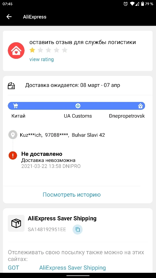 Страна: RU Color: Black Ships From: China Доставка: Saver Shipping 17.03.2021