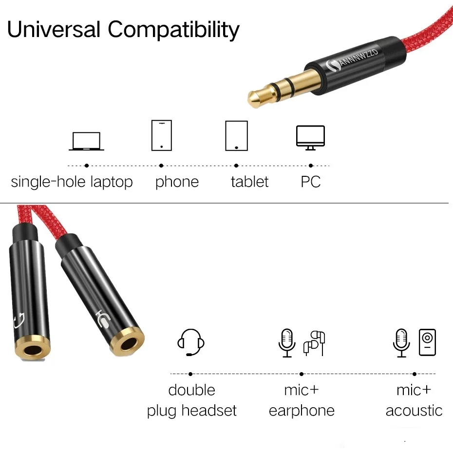 Название продукта: 3,5 Мужской до 2 Женский тетрадь караоке аудио кабель-адаптер Особенности продукта: для мобильный телефон или компьютер устройства вывода звука, аудио 3,5 женский один для аудио вход (без микрофона), одна для аудиовыход (наушники). Применение: для нового ноутбука, планшета, смартфона, нетбука и так далее аудио порт (микрофон + гарнитура) сделан в один, то есть только один аудио интерфейс, используйте этот продукт, вы можете подключить два 3,5 вилки отдельные компьютерные наушники (микрофон + наушники)