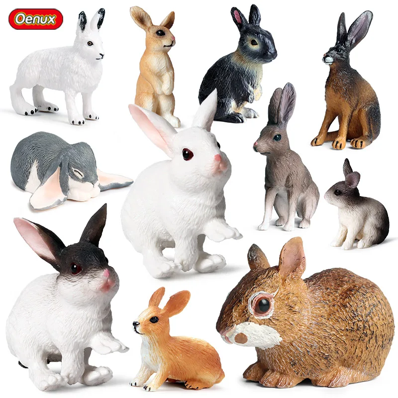 Особенности: Oenux Милая ферма кролик модель Фигурка фигурка дикий пустынный хлопковый хвост заяц милое ПВХ украшение образование детская игрушка