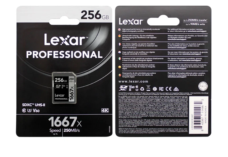 Карта памяти SD Lexar 1667x, класс 10, U3, V60, до 256, до 128, 250