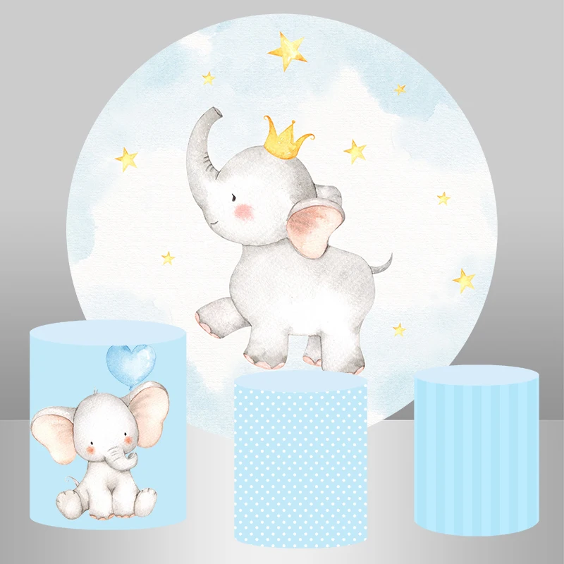 Круглый фон с изображением слона на заказ, фон для фотостудии для новорожденных, праздников, вечеринок, тортов, стола, баннера