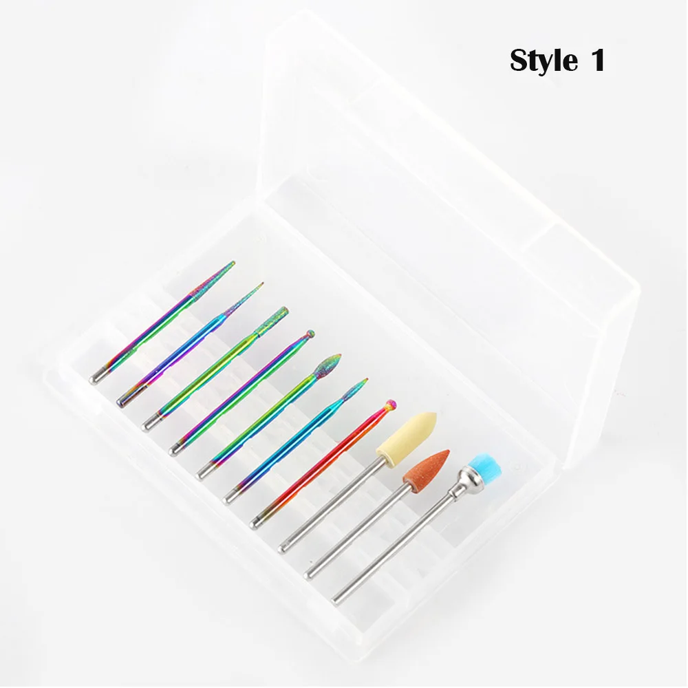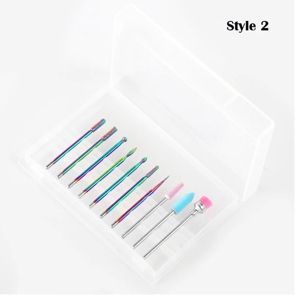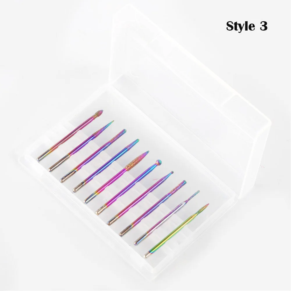 10 шт.кор. алмазные сверла для ногтей набор в цветах радуги 332 "фреза для маникюра роторные сверла для кутикулы аксессуары для сверл