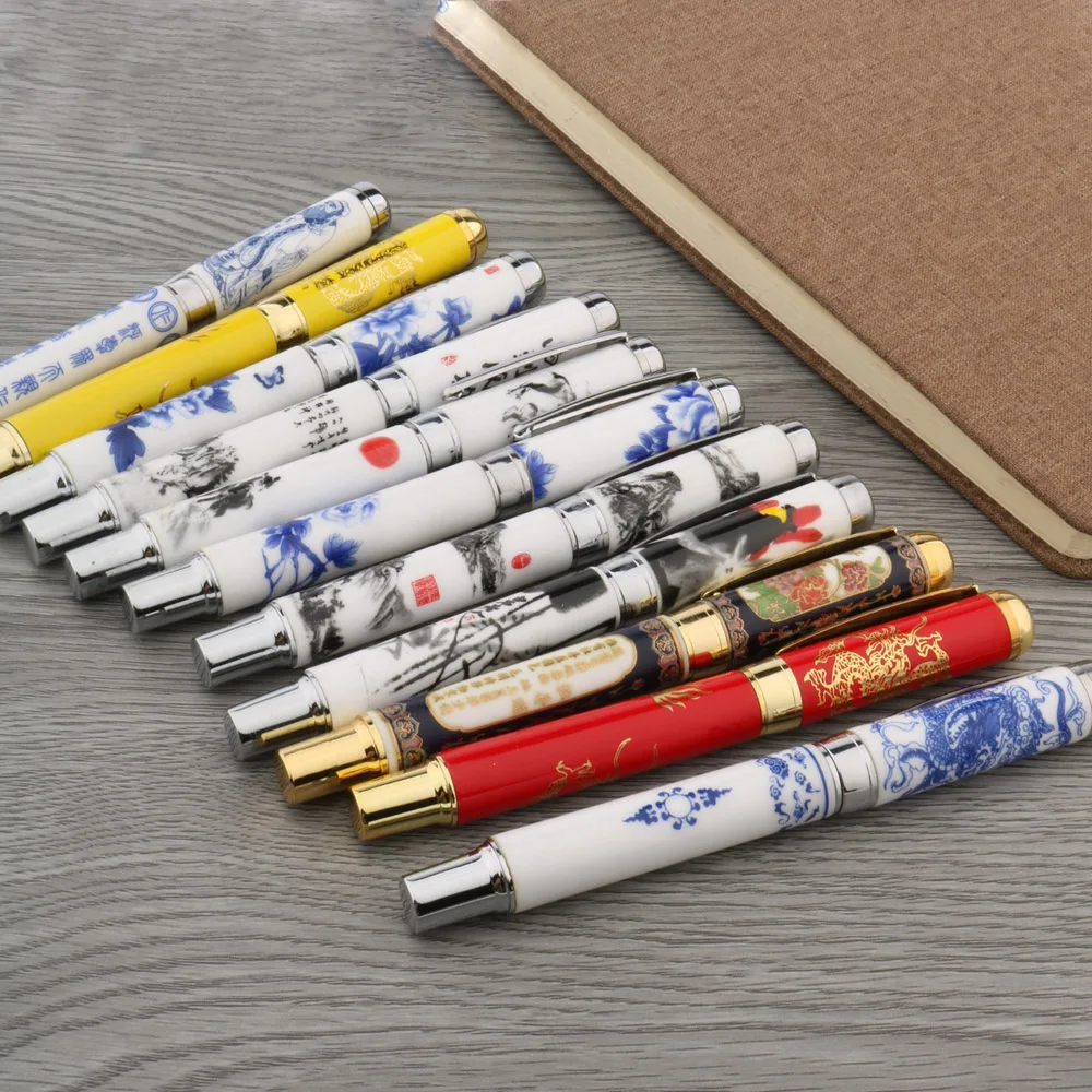 Ручка-роллер из керамики, сине-белая, в стиле ретро, с чернилами, офисные принадлежности