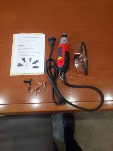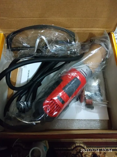 Посылка шла долго, более двух месяцев из-за пандемии, как объяснил продавец. Гравер описанию соответствует, кроме одного, другой бренд, а так ничем не отличается. Патрончик хороший. заказывал в минимальной комплектации, пришло всё, очки, ключик, запасные графитные щетки и две шарошки. Отдельно купил диски, пробовал резать, всё отлично. Я доволен. За косарь хорошая штука.