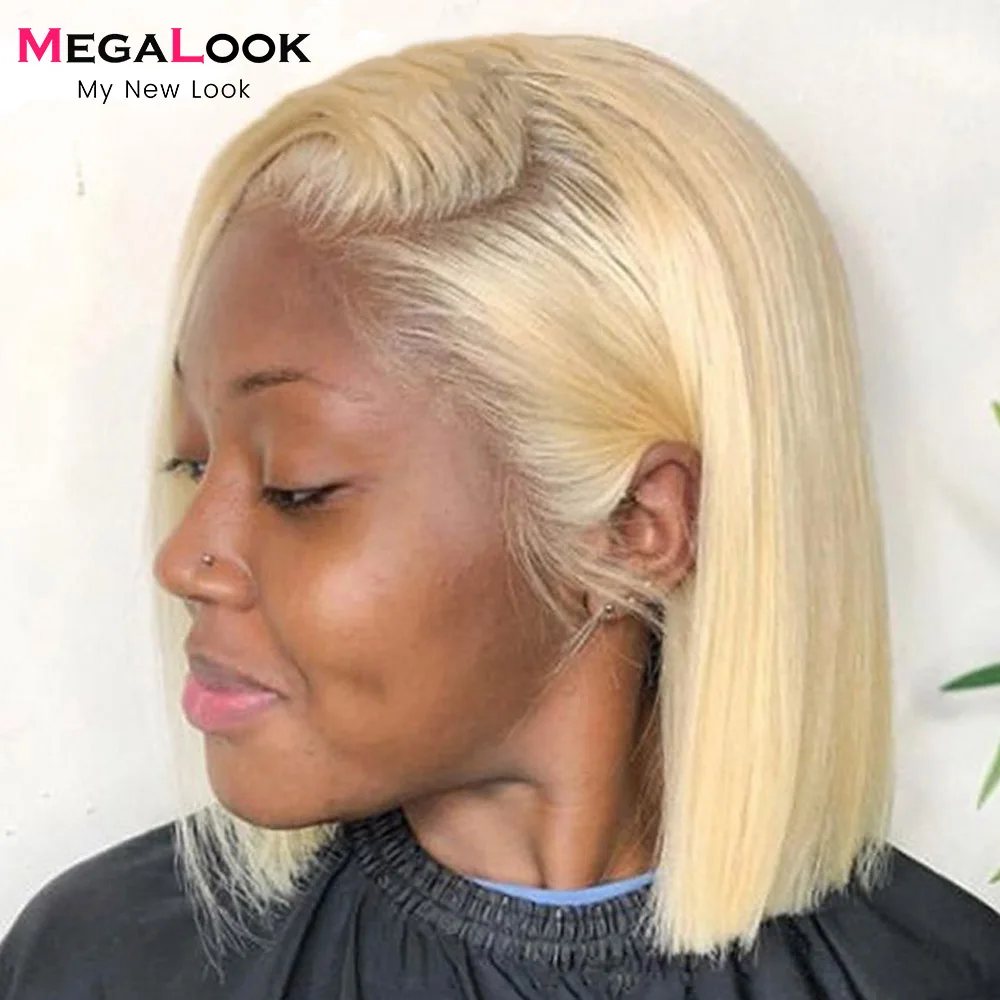 Прямой парик на шнуровке спереди боб парик на шнуровке человеческие волосы Megalook Remy Hair13X4 короткие парики из человеческих волос 613 парик на шнуровке