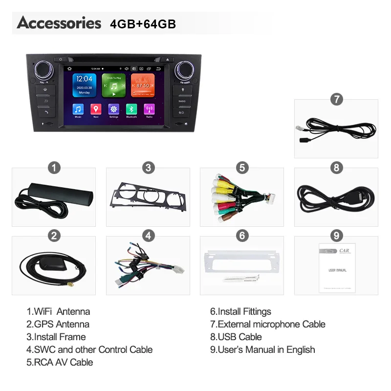 DVD / GPS / Bluetooth/Радио/RDS/встроенный WiFi / Mirror-Link / 3G / 4G / DSP/Встроенный CarPlay / USB / SWC / AUX in/игры/Встроенный Can-Bus / 8 цветов кнопочный свет Видео-вход: камераАудио-вход: AUX1Видео-выход: video1/video2Аудиовыход: FL/FR/RL/RR/сабвуферВерсия Bluetooth: 4,0