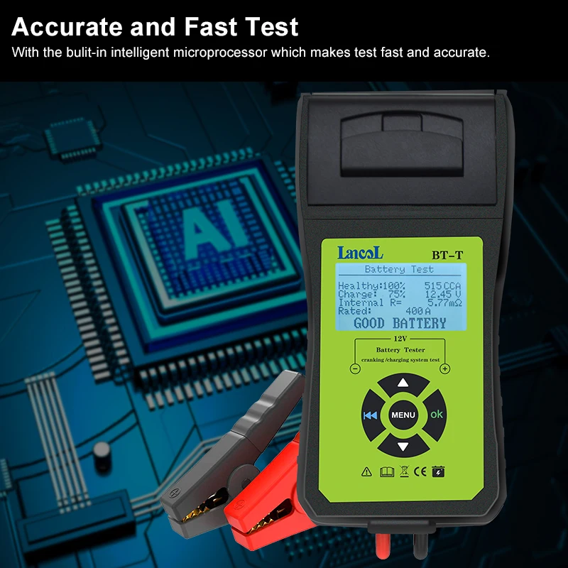 Тестер аккумулятора автомобиля Lancol BT-T, анализатор аккумуляторной системы с многоязычным принтером, Автомобильная диагностическая система питания