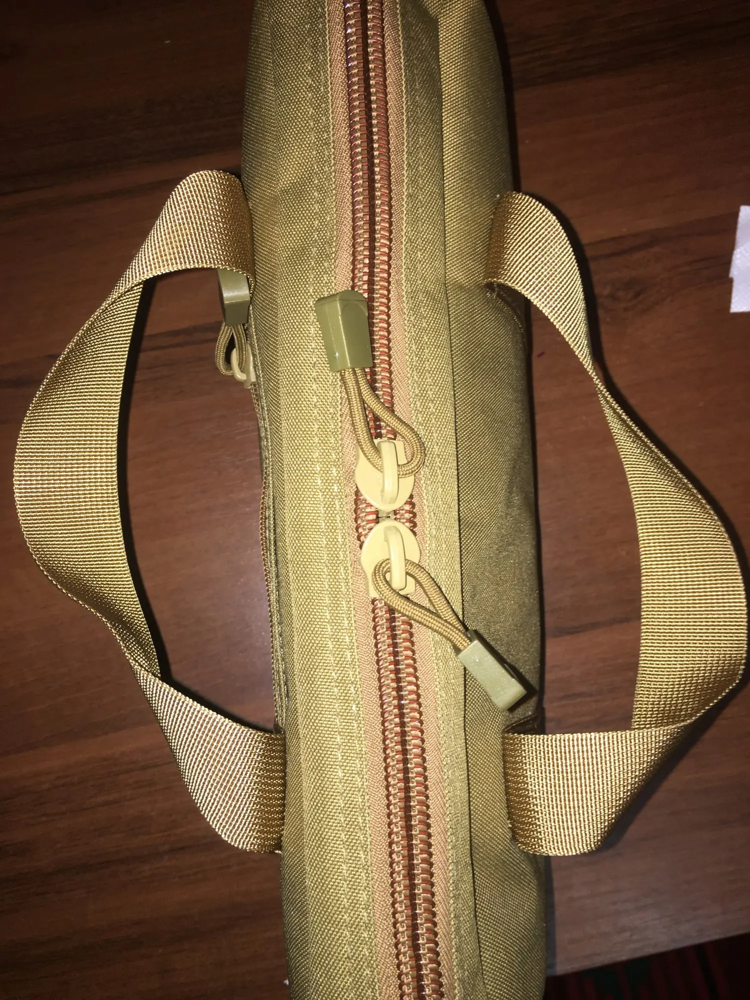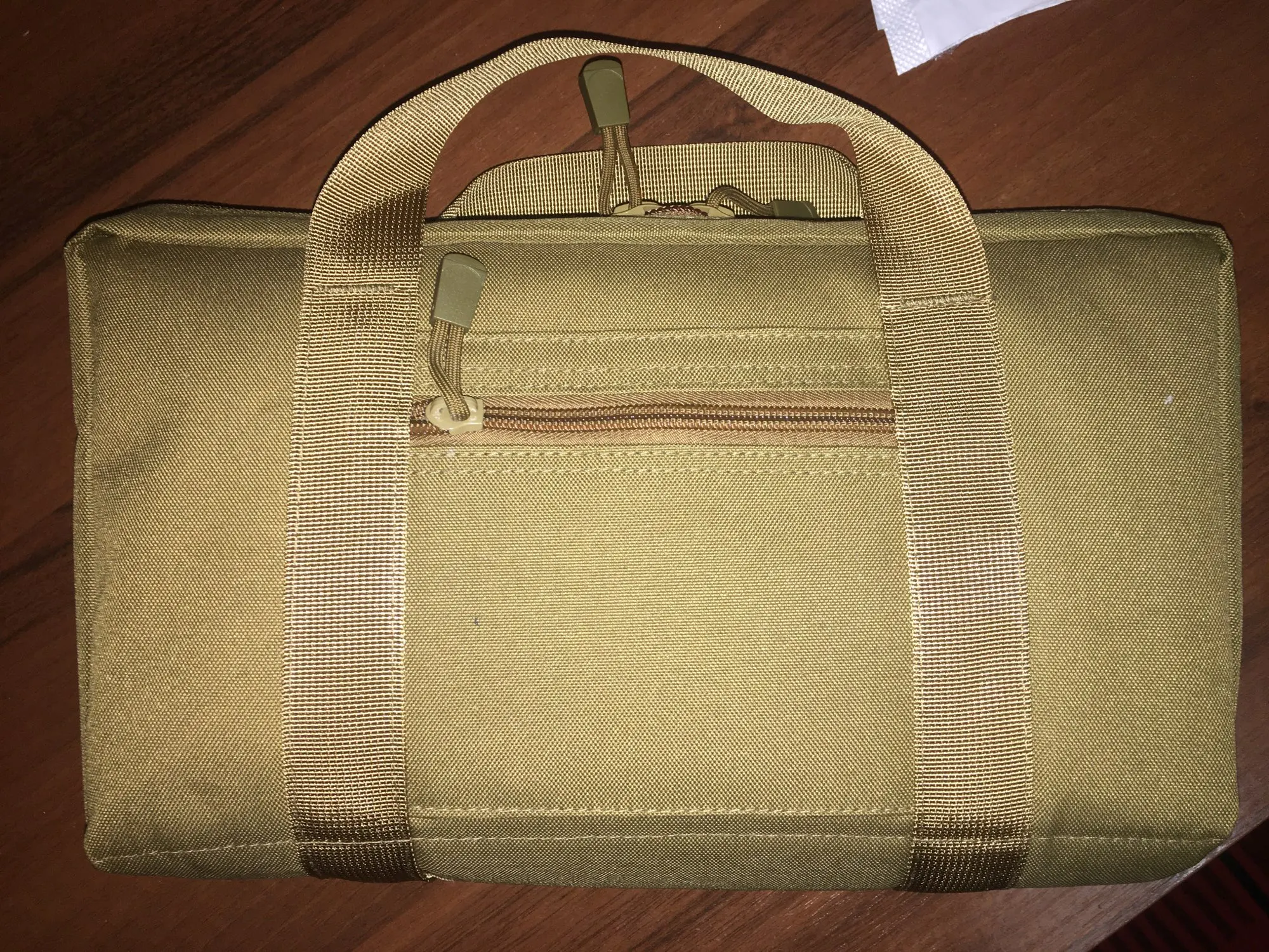 Заказал 11.11 получил 24.12, посылка консолидированная, трек отслеживался, но доставка медленная, застряла в Москве на таможне, видимо оч.много посылок было. Упаковано в простой почтовый пакет, внутри сумка уложена в зип пакет, материал качественный и сумка выглядит очень хорошо без претензий на швы и молнию, Брал для револьвера Кросман 357, длина сволика 8 дюймов, кто понимает тот в курсе, игрушка в длину 26 см, валера без проблем влезает в основной отсек, но к сожалению не в лазит в изолированный отсек, но меня всё устроило. Рекомендую.