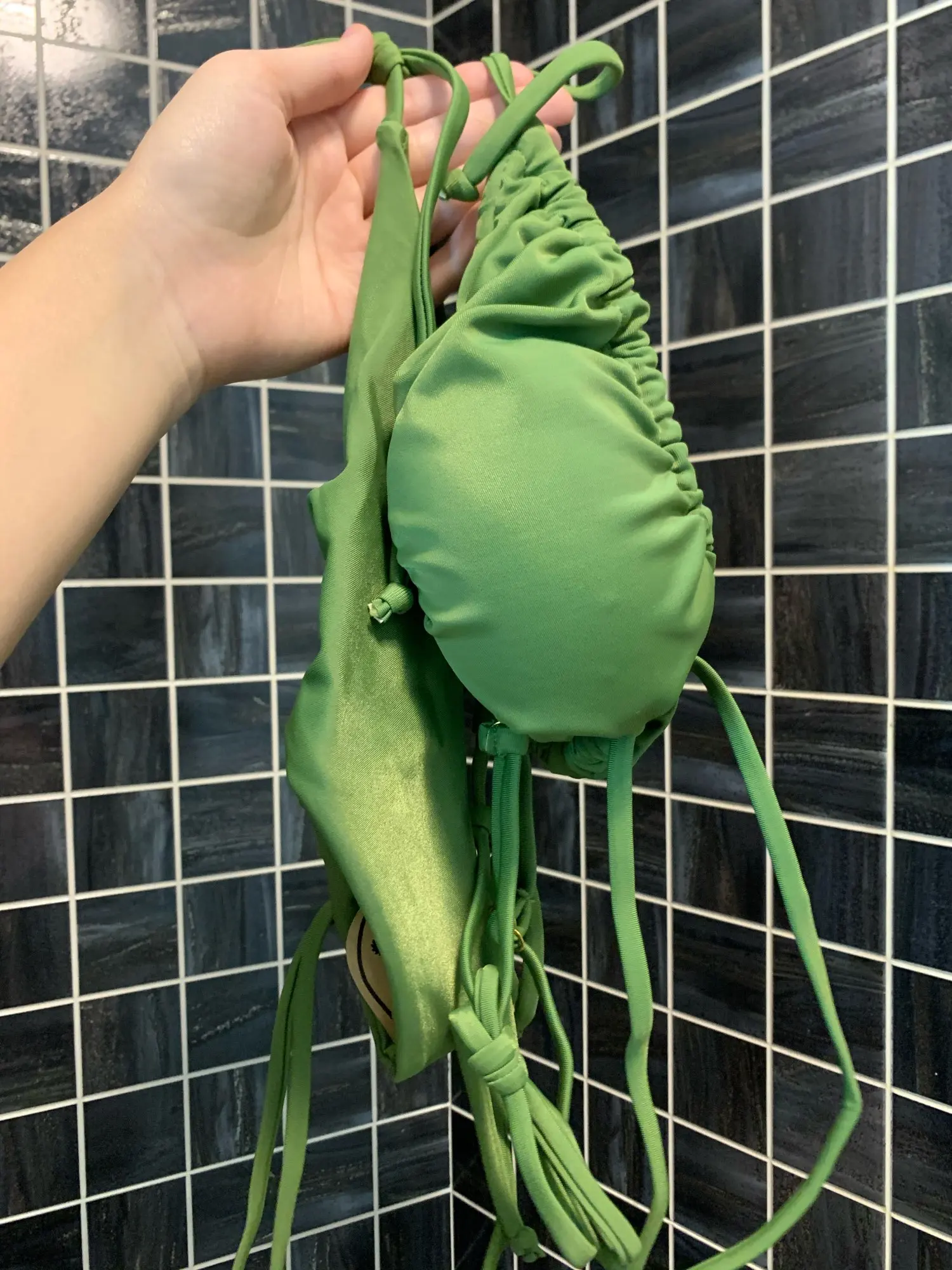 Купальный костюм отличного цвета и приятный на ощупь материал высокого качества. Однако, когда я примерила верхнюю часть бикини, я обнаружила, что ремешок уже сломан. Я не знаю, является ли это индикатором плохого качества или если это была ошибка производителя. Все еще жду возврата или повторной отправки моего поврежденного товара. Топ также немного больше, что мне бы понравилось, но я думаю, что смогу сделать его работу, если он не сломался (это не то, что вы можете легко исправить, Из-за того, как бикини было сделано, ремешок должен быть зашит снова, и я не доверяю своим способностям шитья, чтобы предотвратить его поломку снова)