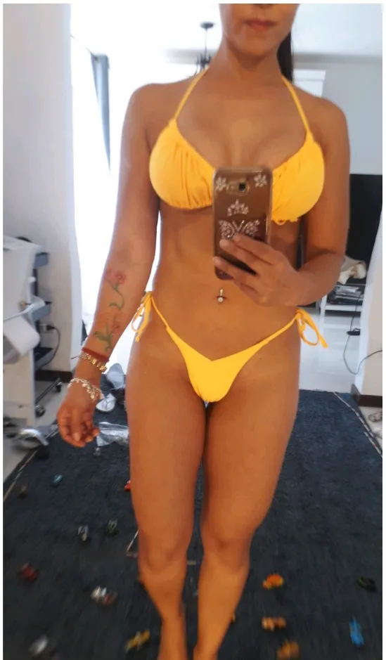 Красивое бикини, особенно модный желтый цвет, Сексуальный; Внимание, размер «необычно» большой (средний равен 44 евро), подошва поднимается очень высоко, верхние чашки очень (тоже), глубокий, подходит для чашек C или D; Всегда возможно разместить «pads» больше, чем те, которые поставляются для a» Лучший вид! "длинные ссылки практичны.