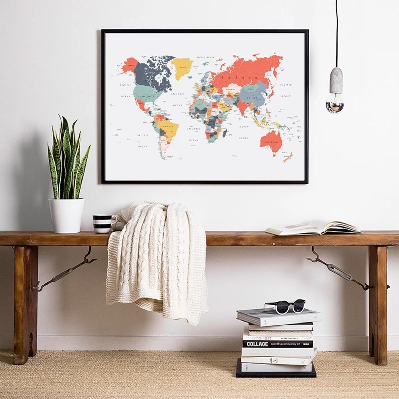 Картина на холсте с картой мира, постеры кораллового, синего, желтого, розового цветов, Современная Настенная картина для гостиной, домашний декор