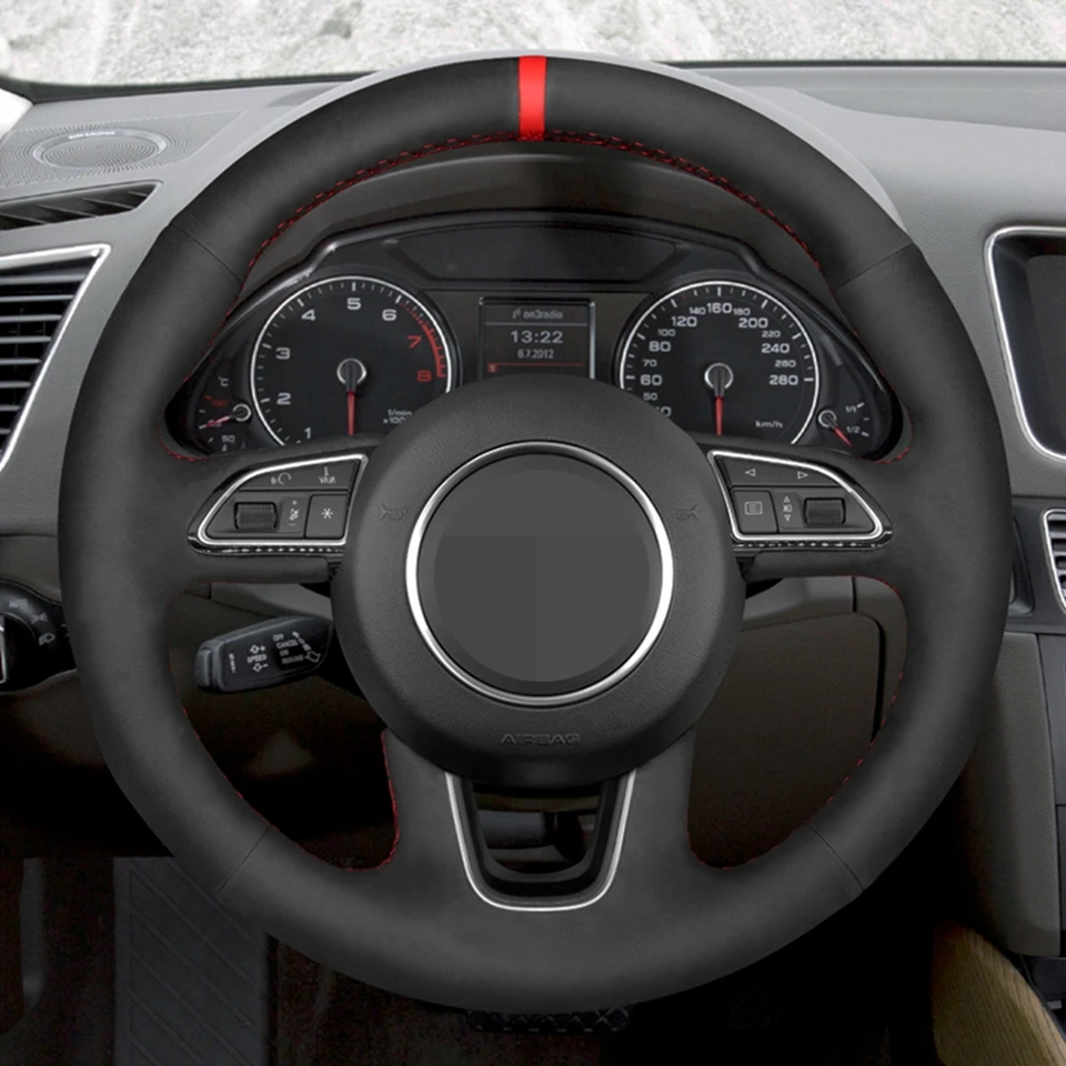 Чехол рулевого колеса автомобиля DIY черная замша из натуральной кожи для Audi Q3 (8U) 2011-2018 Q5 (8R) 2012-2017 Q7 (4L) 2011-2015 SQ5
