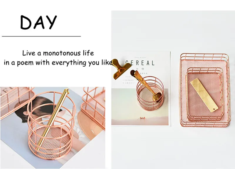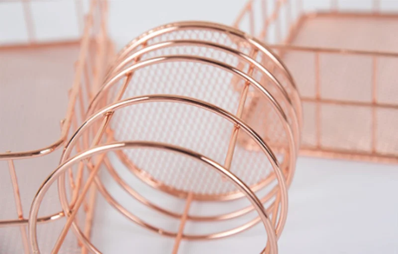 Корзина из металлической проволоки золотистого и розового цвета для хранения дома, офиса, стола, всякой всячины, держателя кистей для макияжа, Нордического декора, железная корзина-Органайзер