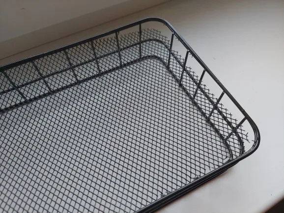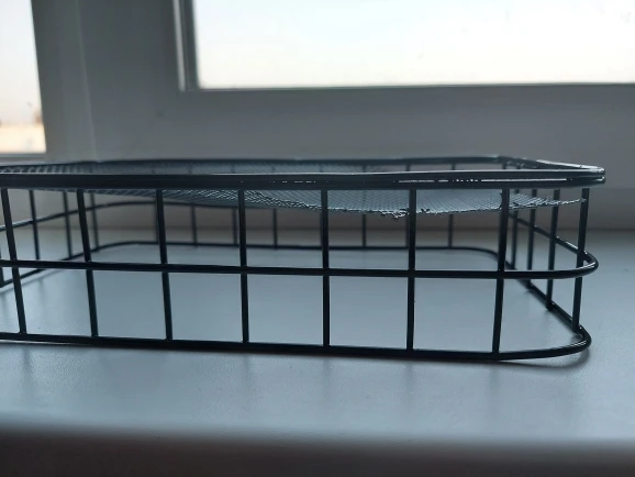 Корзинка пришла хорошо упакованной, без царапин. Дно было немного вогнуто внутрь, но это скорее особенность конструкции. Очень прикольная штука. Вместительная.