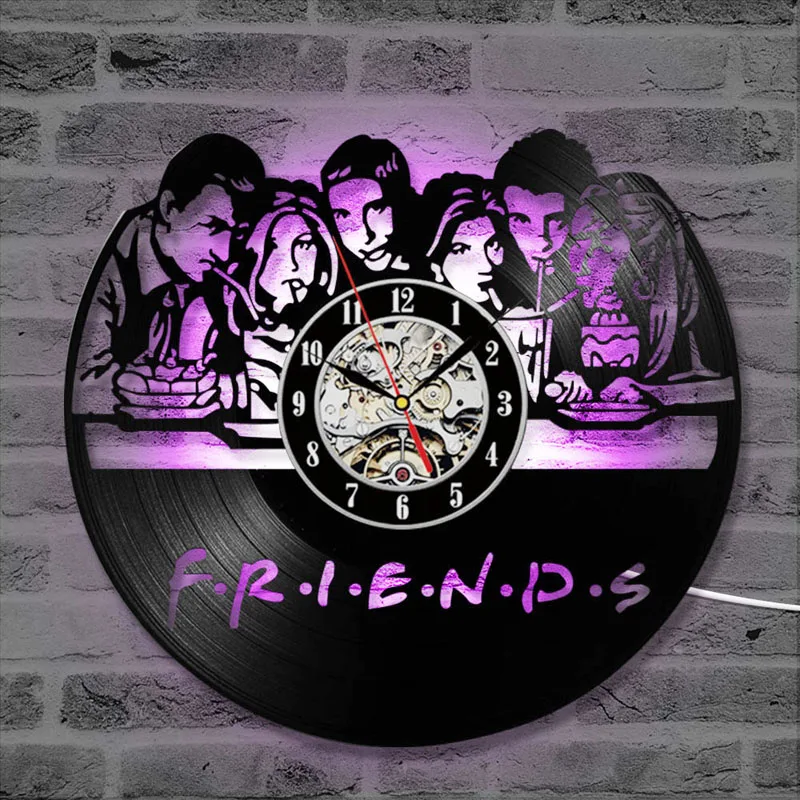 Часы в виде компакт-диска Friends TV Series, настенные часы с светодиодный подсветкой, винтажные настенные часы с виниловой записью, домашний декор, подарок для друга horloge