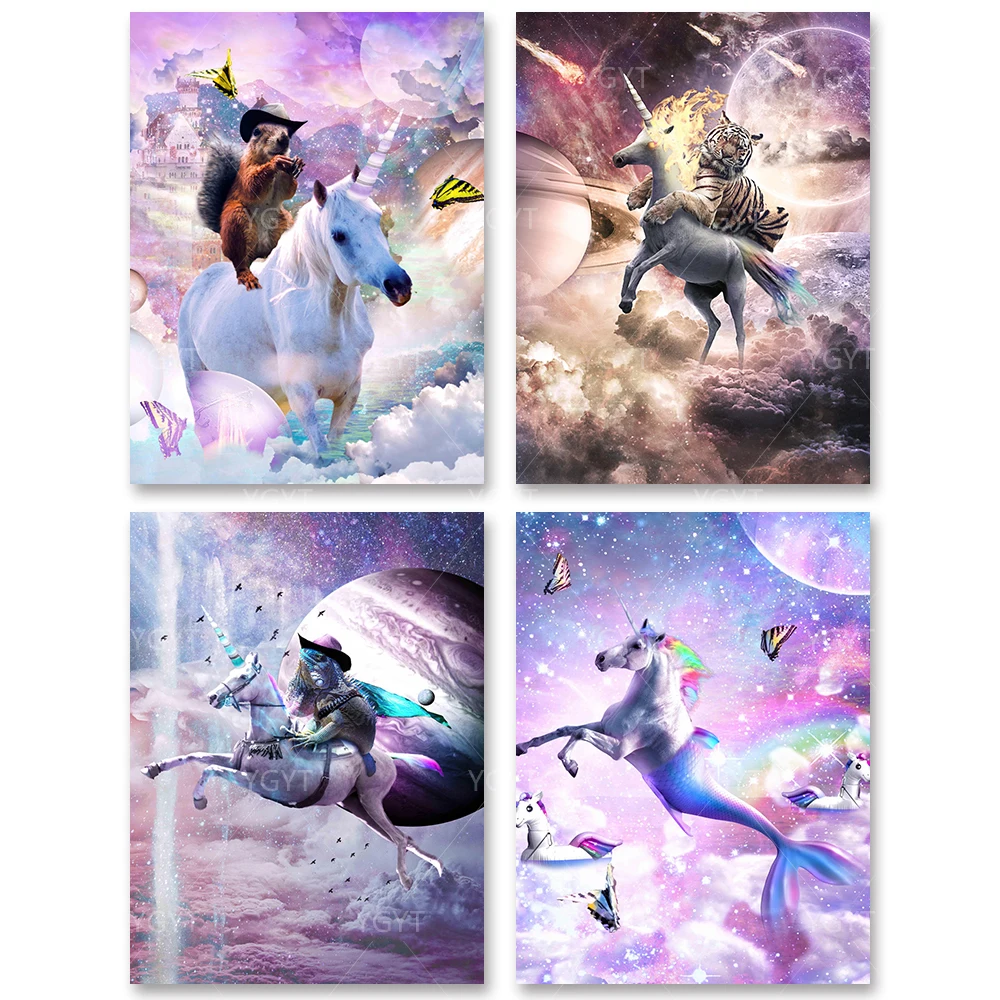 Настенная живопись ручной работы Тигр Единорог алмаз 5D акварель небо вышивка крестиком Мозаика полная круглая вышивка подарок