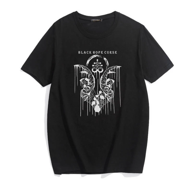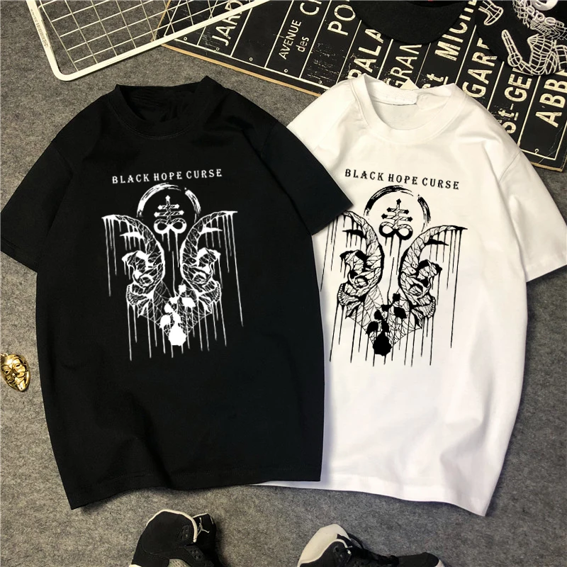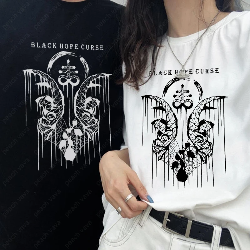 Футболка женская в стиле хип-хоп, темно-черная, с надписью Проклятие, с изображением демона, Сатаны