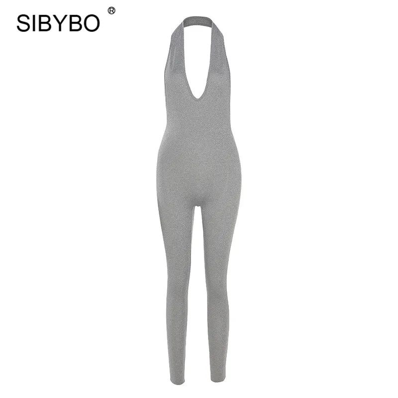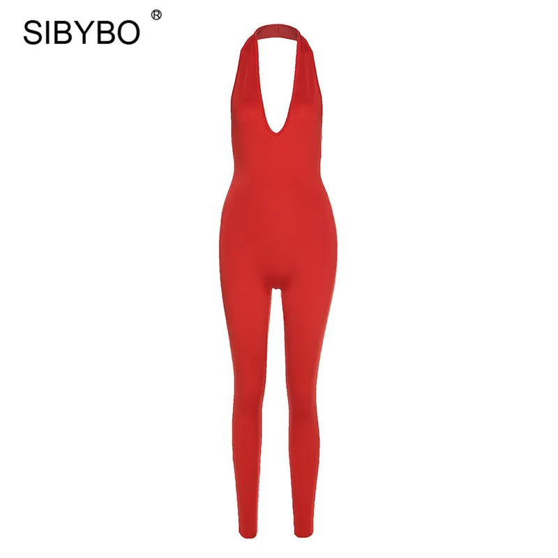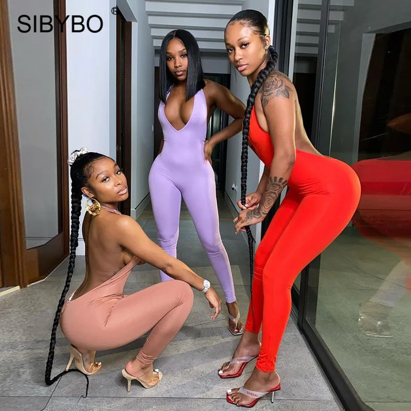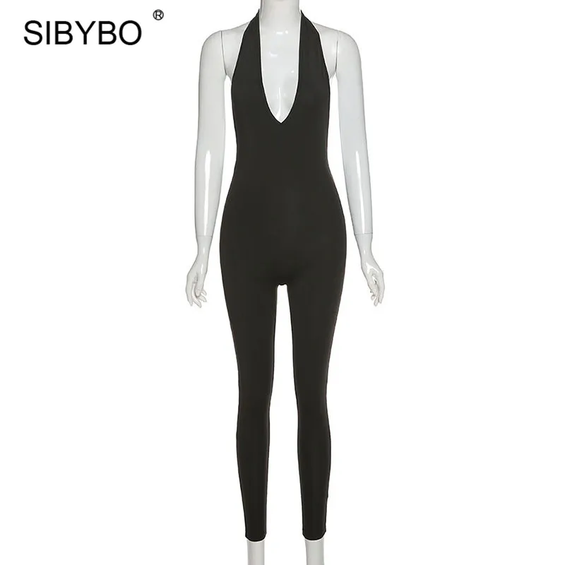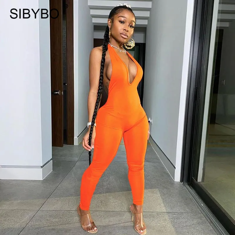 Женский комбинезон с лямкой на шее SIBYBO, однотонный комбинезон с v-образным вырезом и открытой спиной, летний спортивный комбинезон 2020