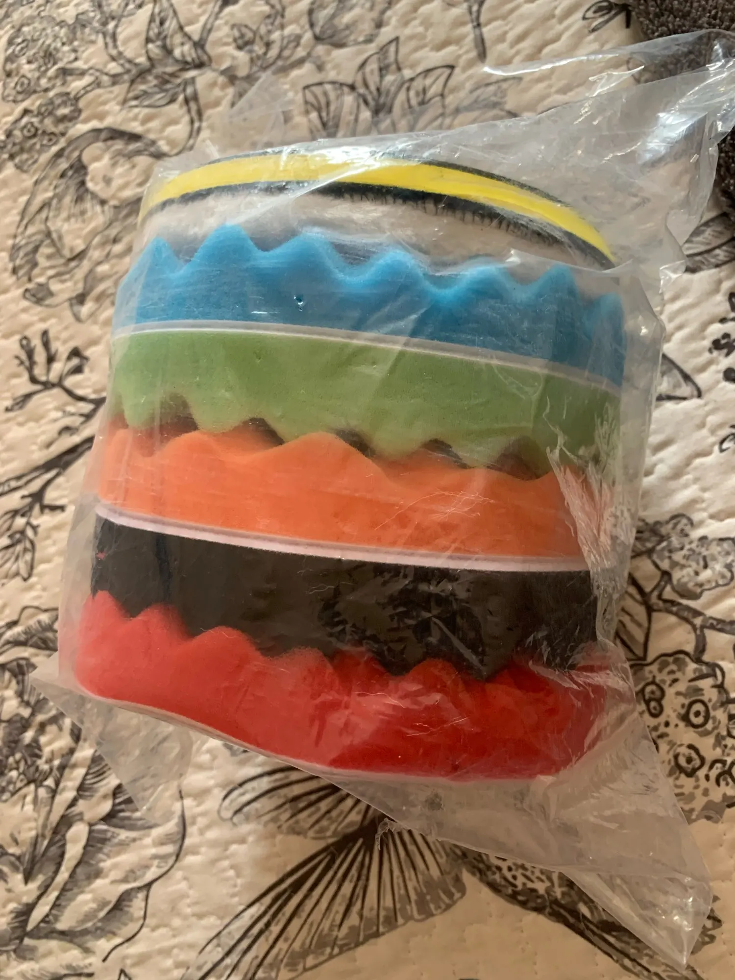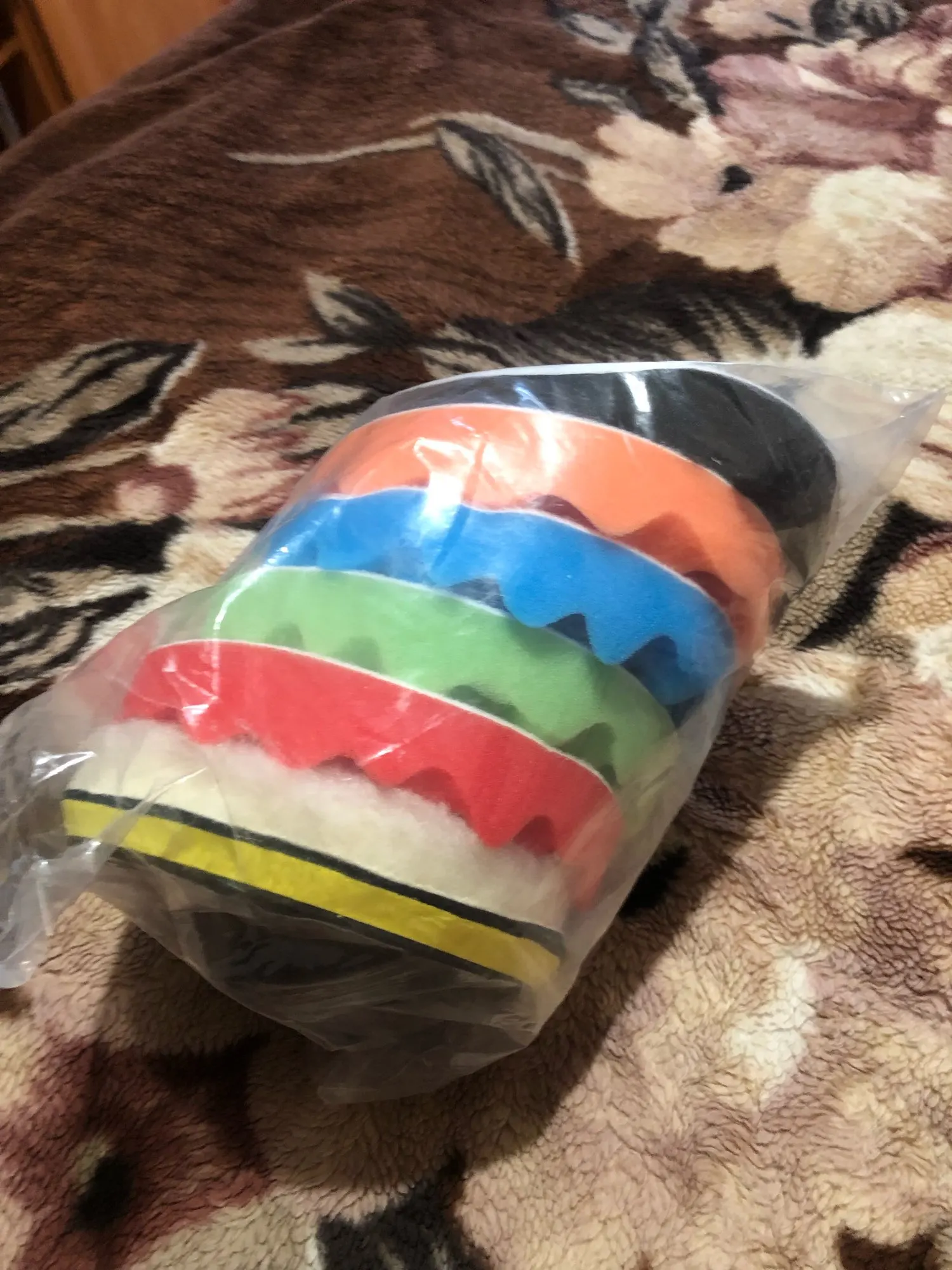 Доехали быстро. К сожалению уже холодно и не до полировки. Губки хорошего качества и разные по плотности. Самая жесткая орандж, затем красная, зеленая , синяя и черная. Надеюсь качество будет хорошим.