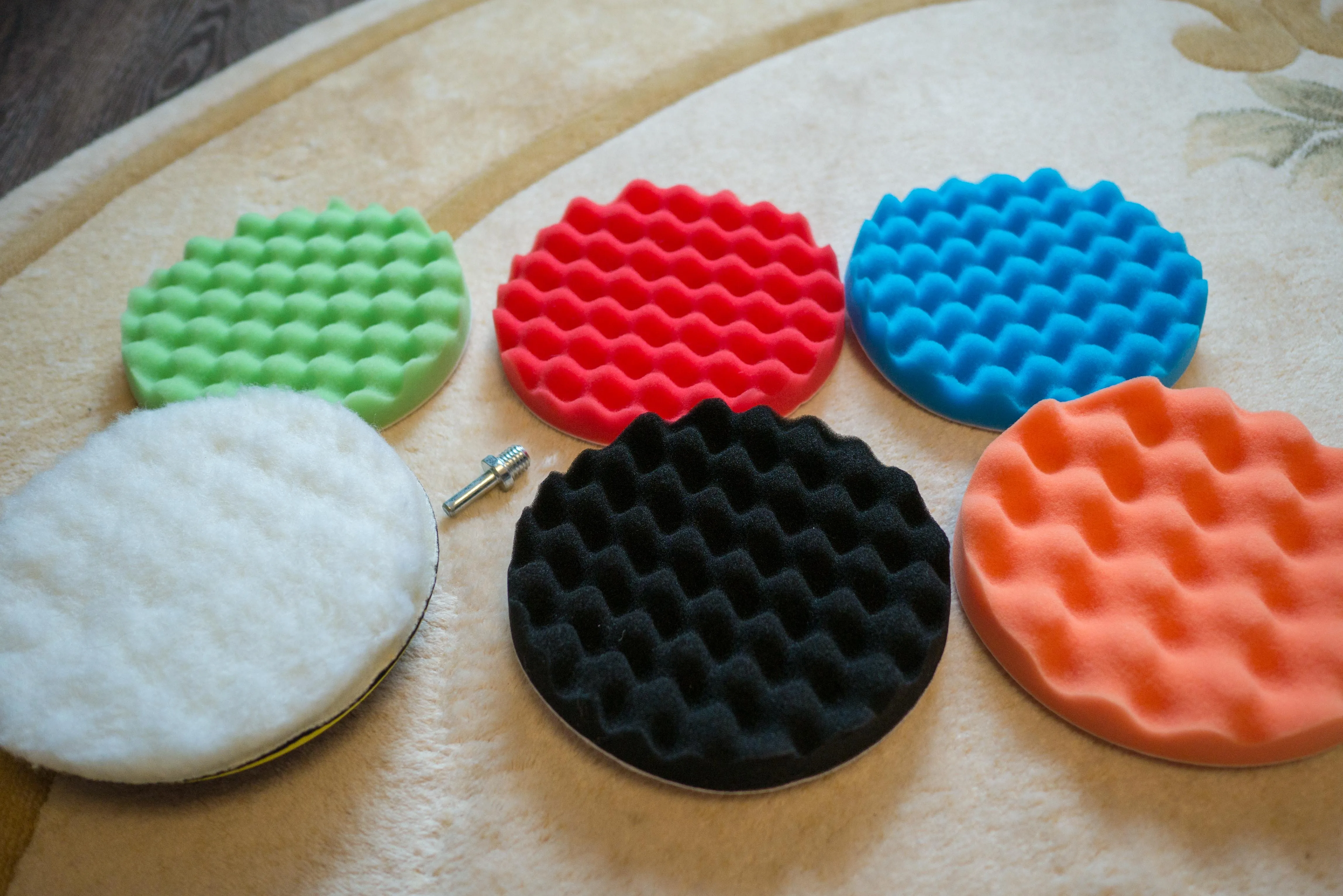 Заказывал с доставкой из РФ. Доставка курьером до Тульской обл., около 2-х недель. Спасибо! По жесткости поролона особой разницы не заметил за исключением оранжевой насадки, она пожестче. Для полировки личного авто самое то!