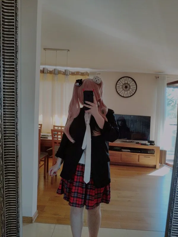 Парик для косплея Dangan Ronpa Danganronpa джунко эношима, розовый длинный волнистый с зажимом для конского хвоста, термостойкий парик для косплея + заколки с медведем