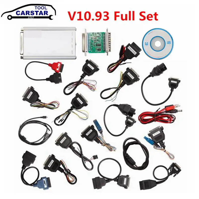 Список адаптеров CarProg:1: основной harware интерфейс CarProg2: Адаптер A1 - OBD2 (внутри есть K-line и CAN-bus переключатели. Используйте со всеми автомобилями, недовольными стандартом OBDII)3: D1-одометр-адаптер подушки безопасности (приборная панель, адаптер программирования подушки безопасности)4: А3-транспондер антенна (используется со всеми CARPROG иммобилайзером мягкой посуды)5: A10-для Motorola кабель адаптера (для Motorola MCU программирующий адаптер)6: A11-для BMW EWS Кабель Адаптера (используется для BMW Immo мягкой посуды)7: A16-автомобильный Радио кабель (используется для Opel, для Renault, для Peugeot, для Citroen автомобильное радио сделано для Philips декодирования)8: A15-кабель (используется с адаптером D1, универсальной приборной панелью автомобиля и адаптером для программирования подушки безопасности)9: A17-для Honda Airbag OBD2 кабель (адаптер для Honda airbag reset by OBDII)10: А4-Eeprom кабель адаптера (используется для программирования eeprom)11: кабель с зажимом A5 - DIP8 (зажим DIP8 для программирования eeprom)12: кабель с зажимом A6 - SOIC8 (зажим SOIC8 для программирования eeprom)13: A7-для MB 38-Pin кабель (используется для MB подушка безопасности и приборная панель с переходом на программное обеспечение)14: A8-для BMW 20-Pin кабель (используется для BMW Подушка безопасности и приборная панель с переходом на программное обеспечение)15: кабель адаптера RNS510 (кабель интерфейса радиодекодирования RNS510)16: для VOLVO для FORD CAN 2006 + кабель (необходим для программирования подушки безопасности и приборной панели)17: для кабеля FIAT CAN 2006 (необходим для программирования подушки безопасности и приборной панели)18: C1 OBD2 Женский кабель19: USB кабель20: кабель питания21: компакт-диск из мягкой посуды