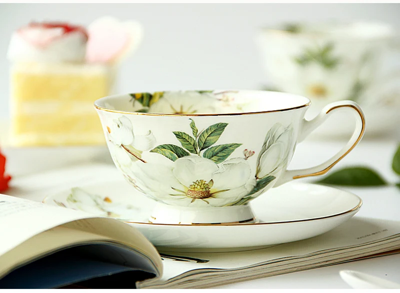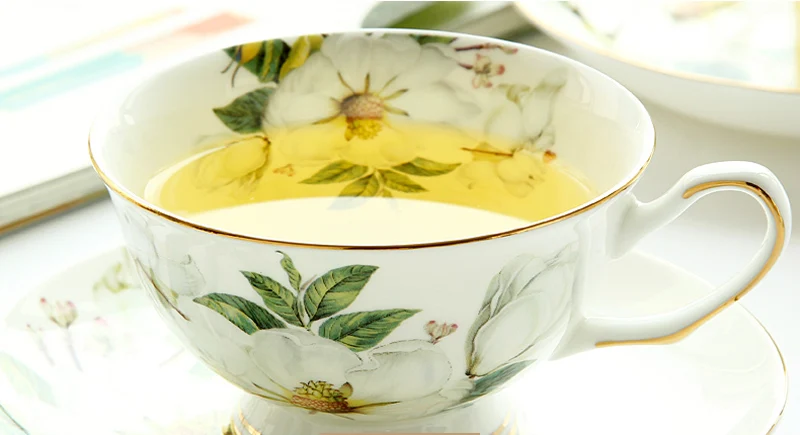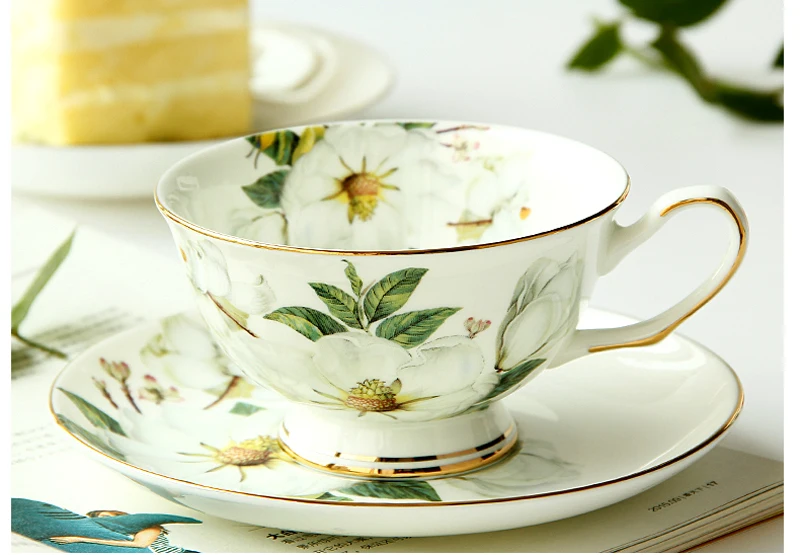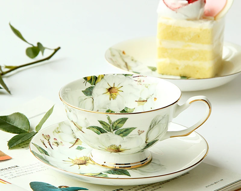 Набор чайных чашек с блюдцем, из тонкого костяного фарфора, 220 мл, керамическая чашка с изображением камелии, для кафе, кофейные чашки для эспрессо