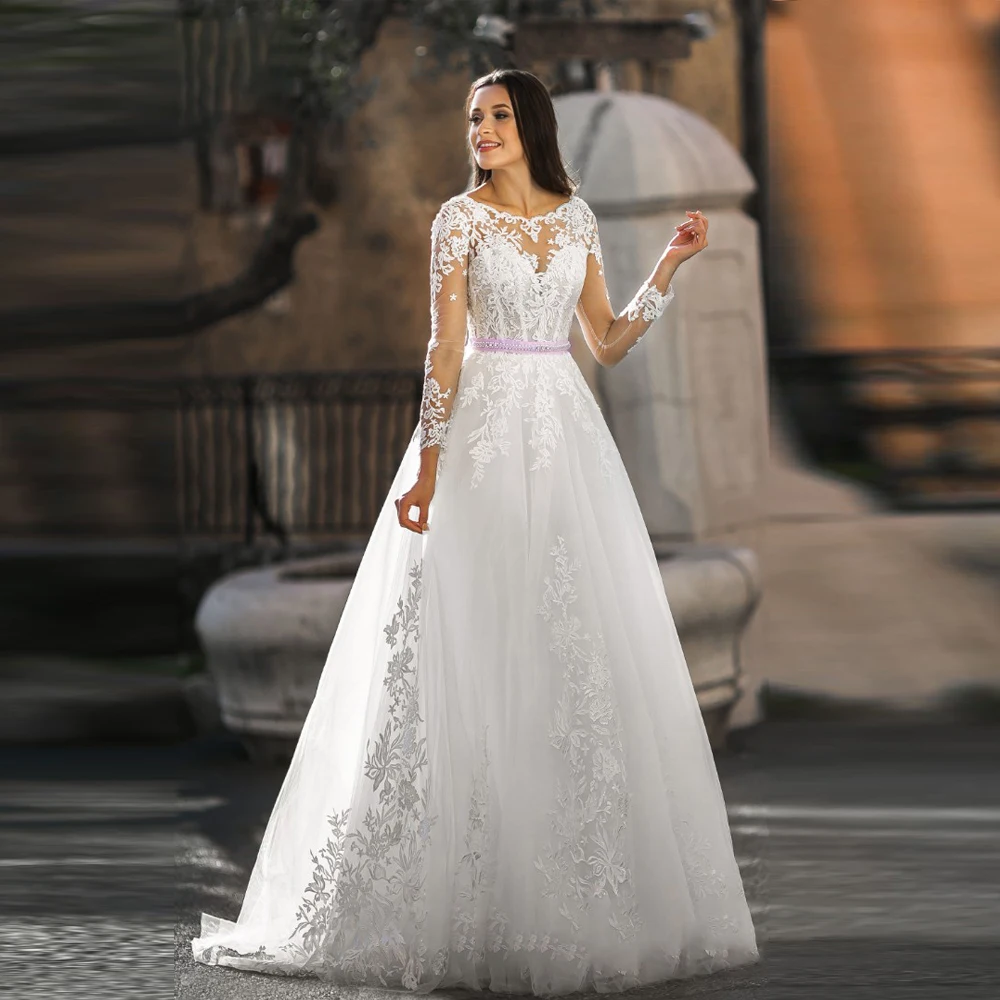 Женское кружевное платье с открытой спиной, ТРАПЕЦИЕВИДНОЕ свадебное платье из тюля с длинным рукавом, модель 2020 года