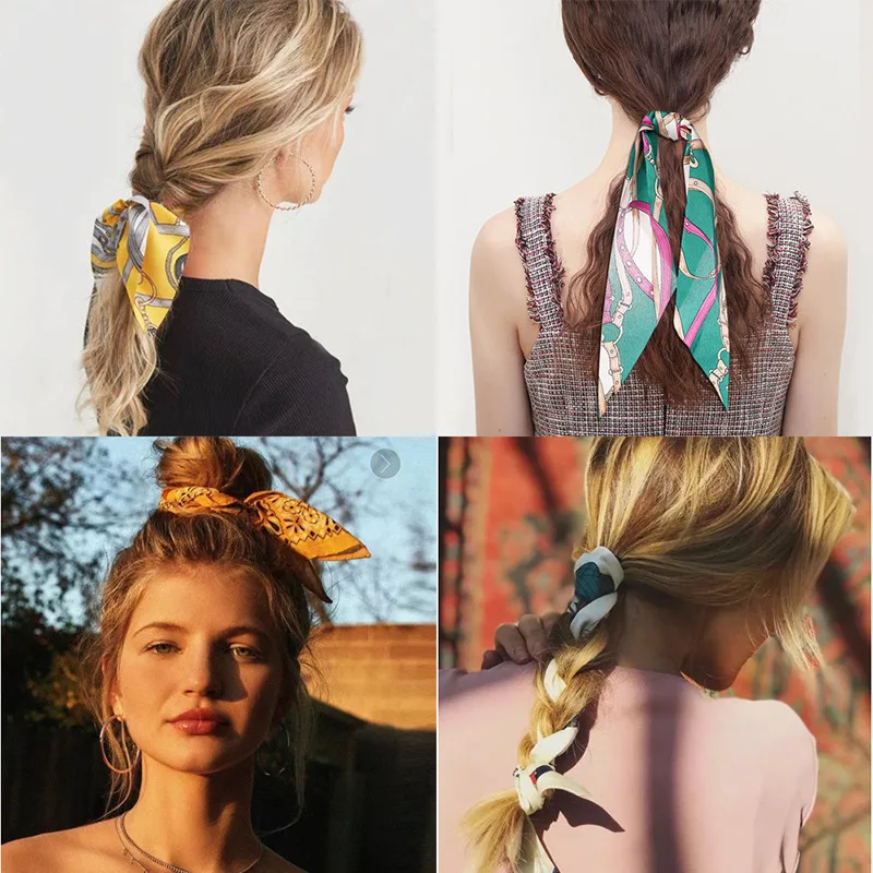 Однотоннаяс цветочным принтом бант атласная Длинная лента хвост шарф заколка для волос резинки для волос для женщин девочек эластичные резинки для волос аксессуары для волос