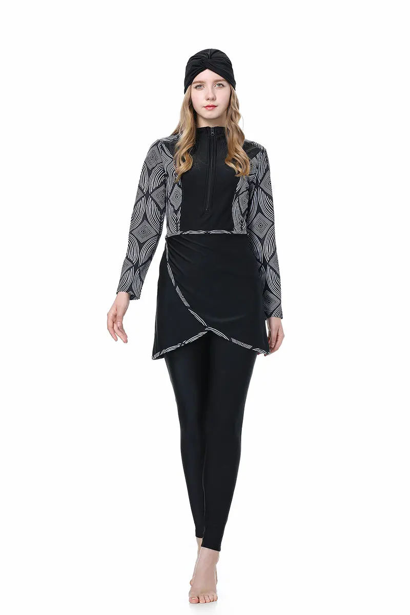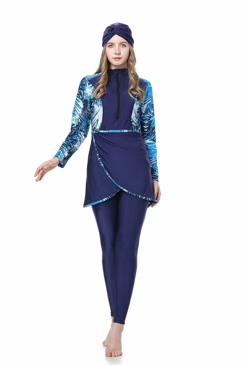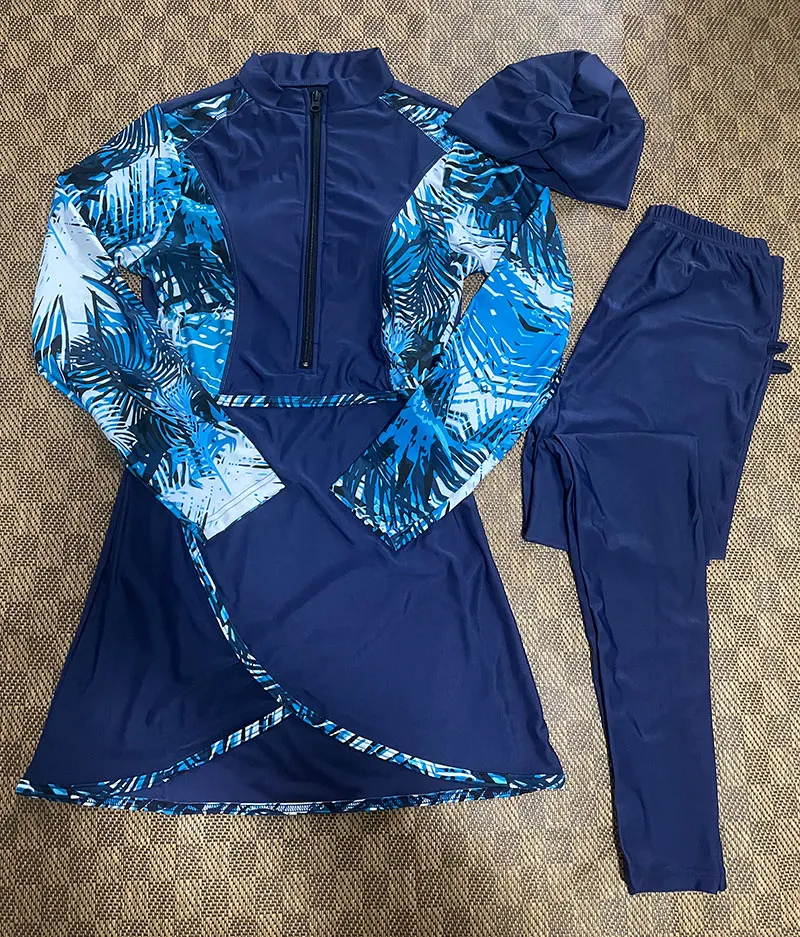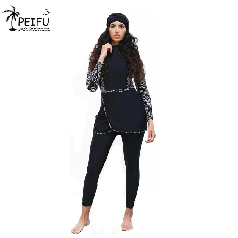 Мусульманский купальник PEIFU, Женский скромный хиджаб в стиле пэчворк, спортивный купальник с длинными рукавами, 3 шт., одежда для купания в исламском стиле Буркини