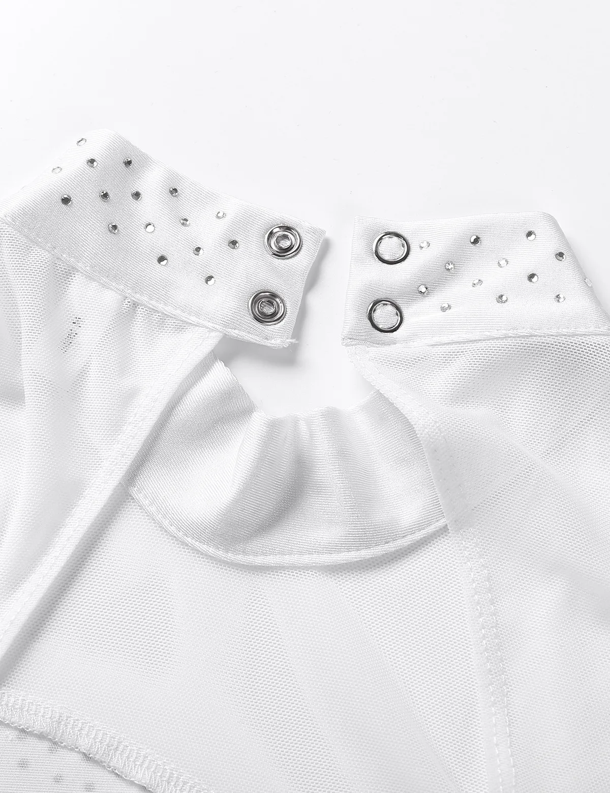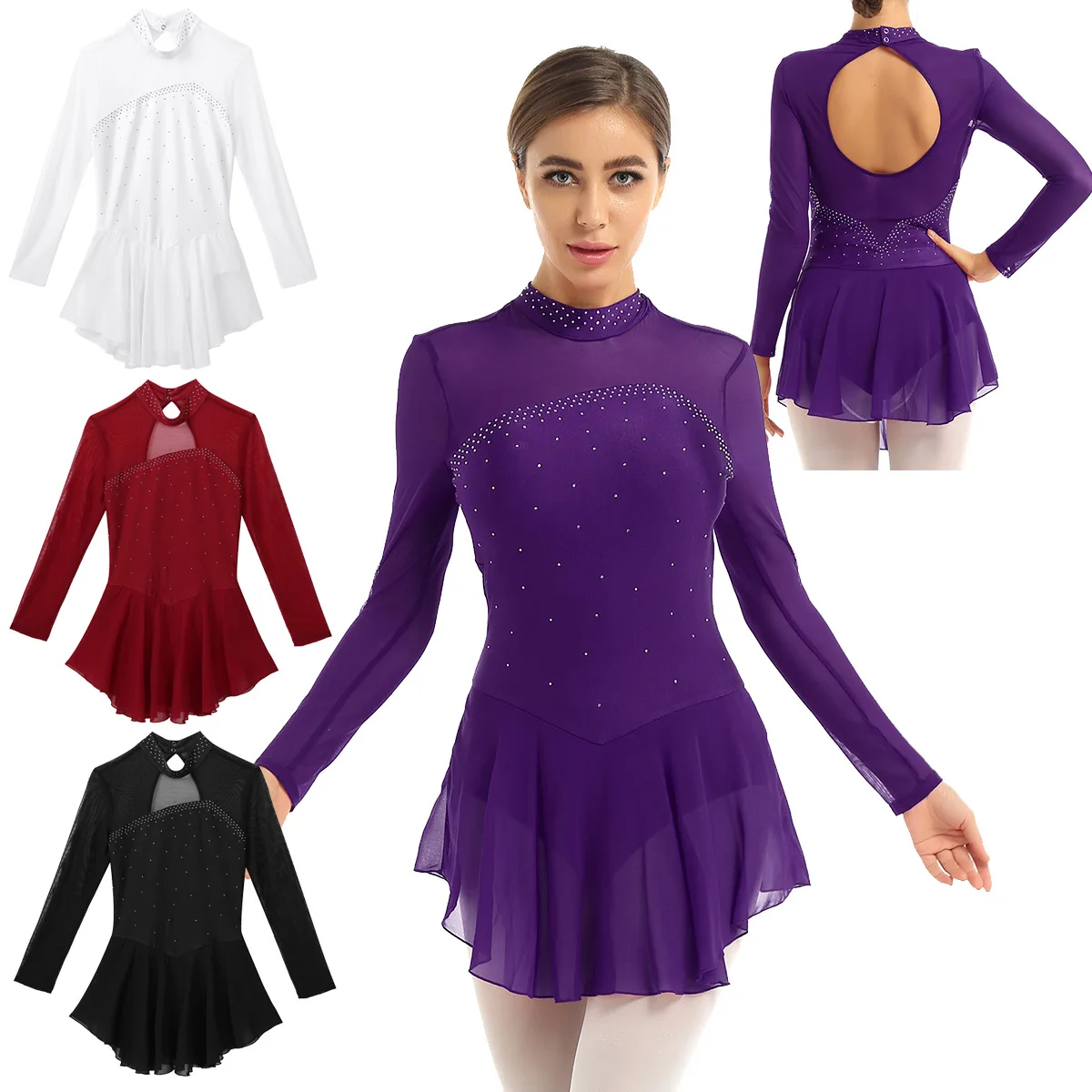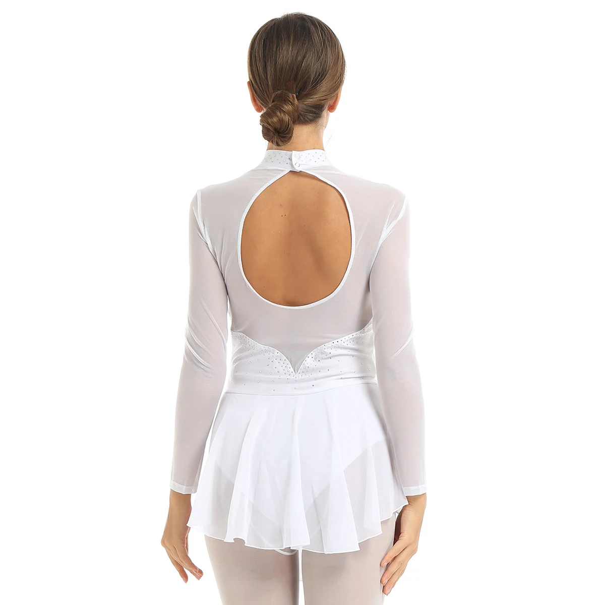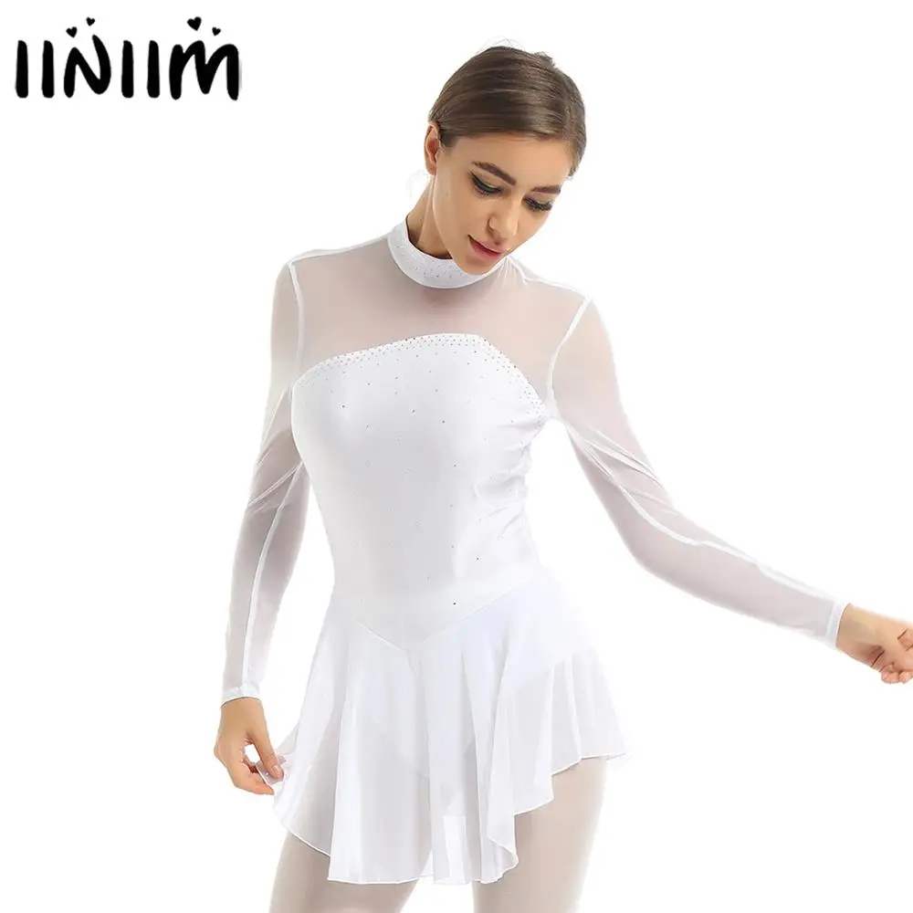 Женское блестящее Сетчатое платье iiniim, со стразами, открытой спиной, для фигурного катания на коньках, балетное платье-пачка, Купальник для танцев