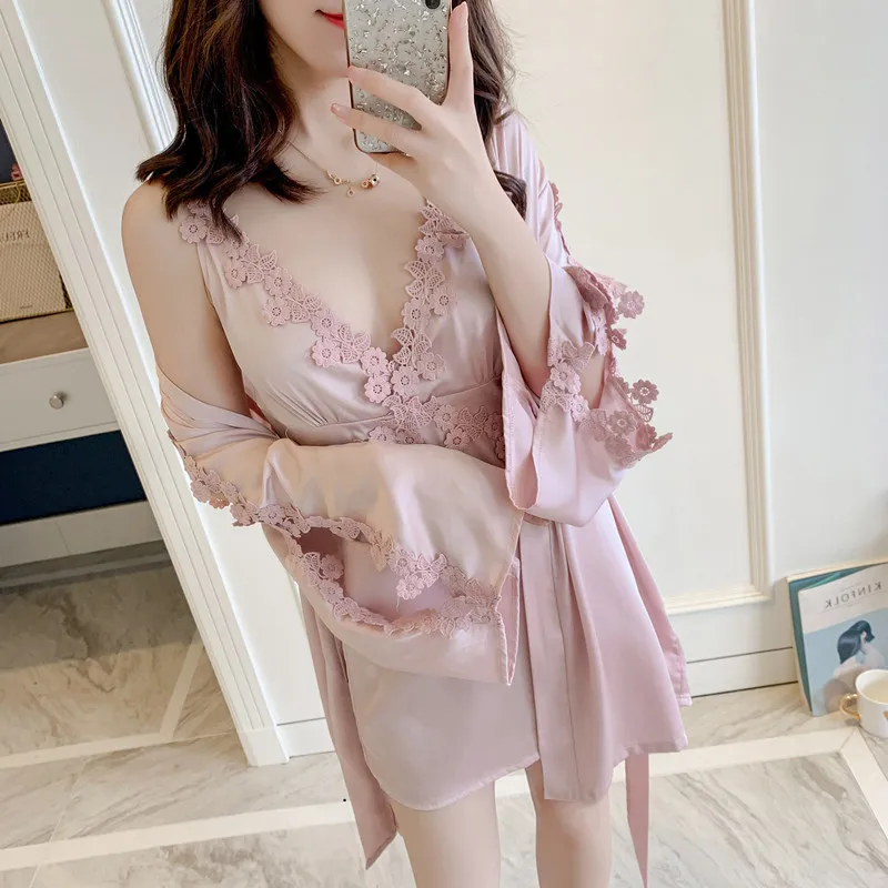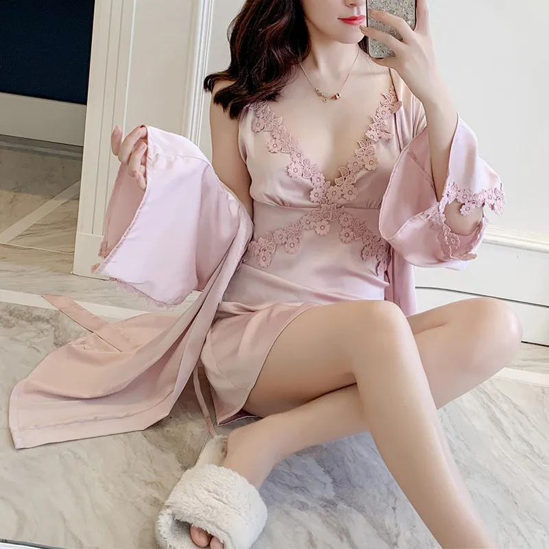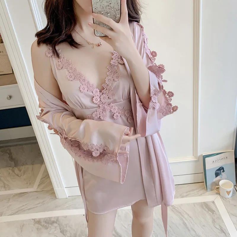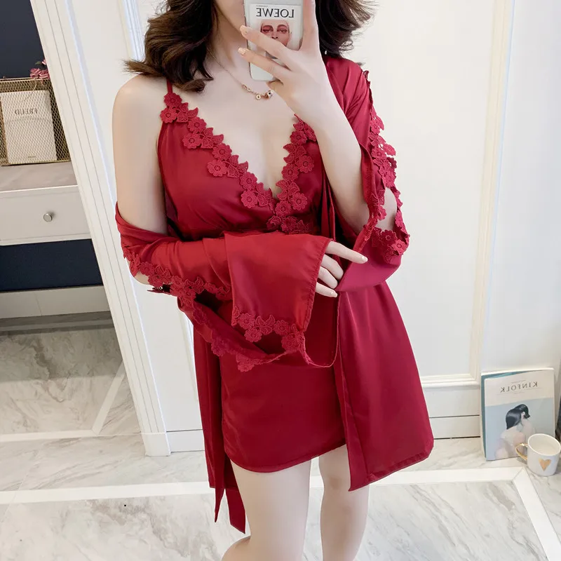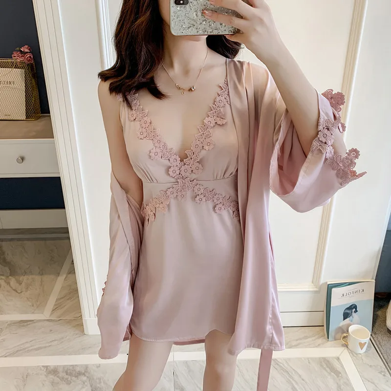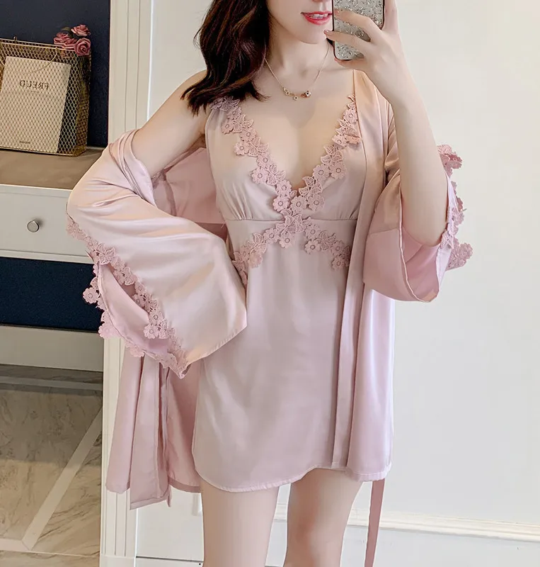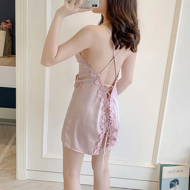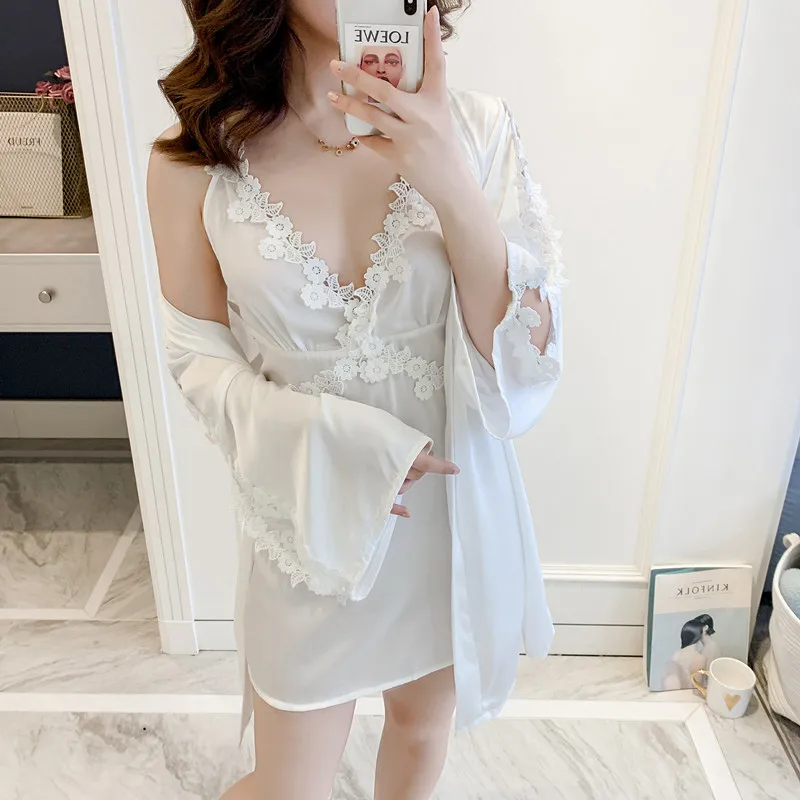 Комплект женской атласной ночной рубашки с вырезами, пикантный комплект из 2 предметов, одежда для сна, ночная рубашка, нижнее белье, Новая Домашняя одежда, ночное белье