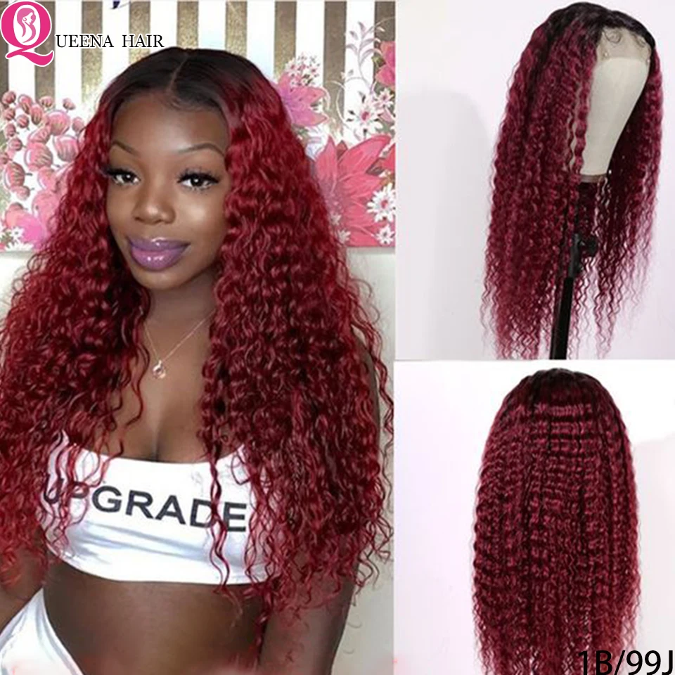 Парик 1B 99j со шнуровкой спереди, волнистые волосы 4x4, парик с за...