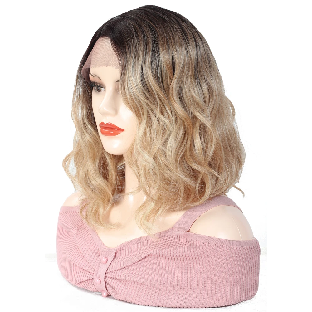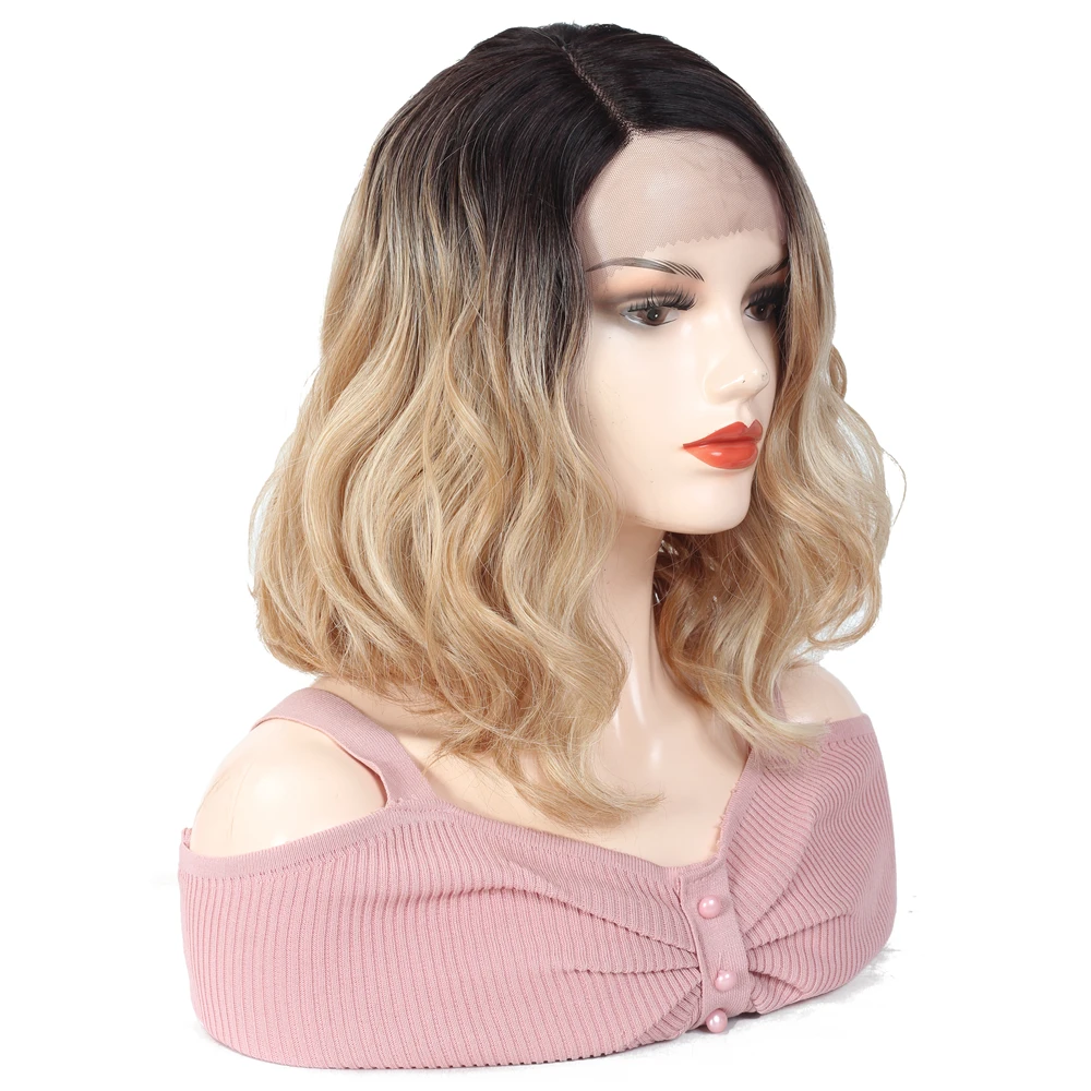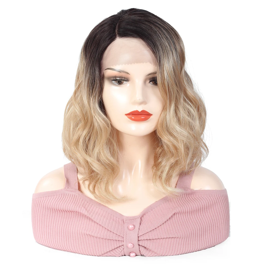 SOKU эффектом деграде (переход от темного к блондинка Синтетические волосы на кружеве парик короткие синтетические волосы парик для черный, белый цвет Для женщин L часть кружева Модаволнистый парик
