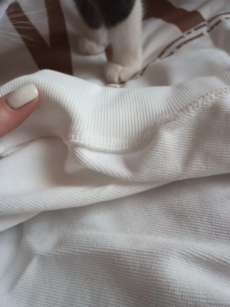 Всё как на фото, соответствует, единственно не рассчитала с размером, рукава чуть коротковатые