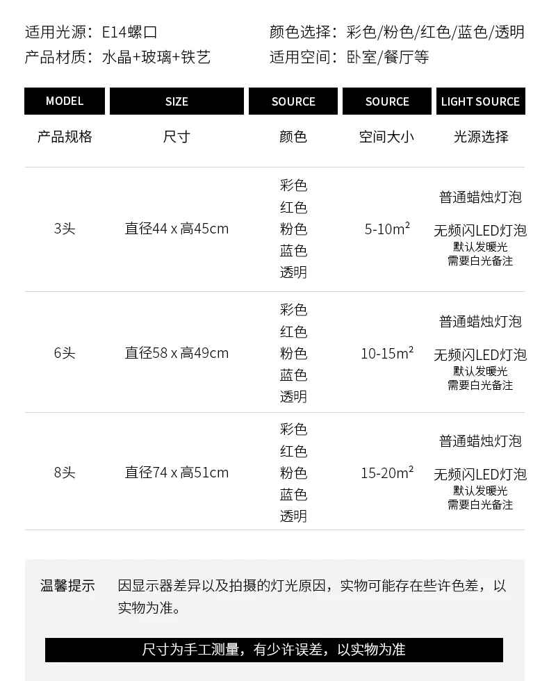 Источник света и лампы:E14 или E12 (E12 bulbholder для Америки и Канады) bulbholder, 3/6/8 огни * 5 Вт (led) или 7 Вт (Энергосберегающая лампа) или 25 Вт (ИнкандЛампа накаливания),Источник света/лампы в комплект не входят