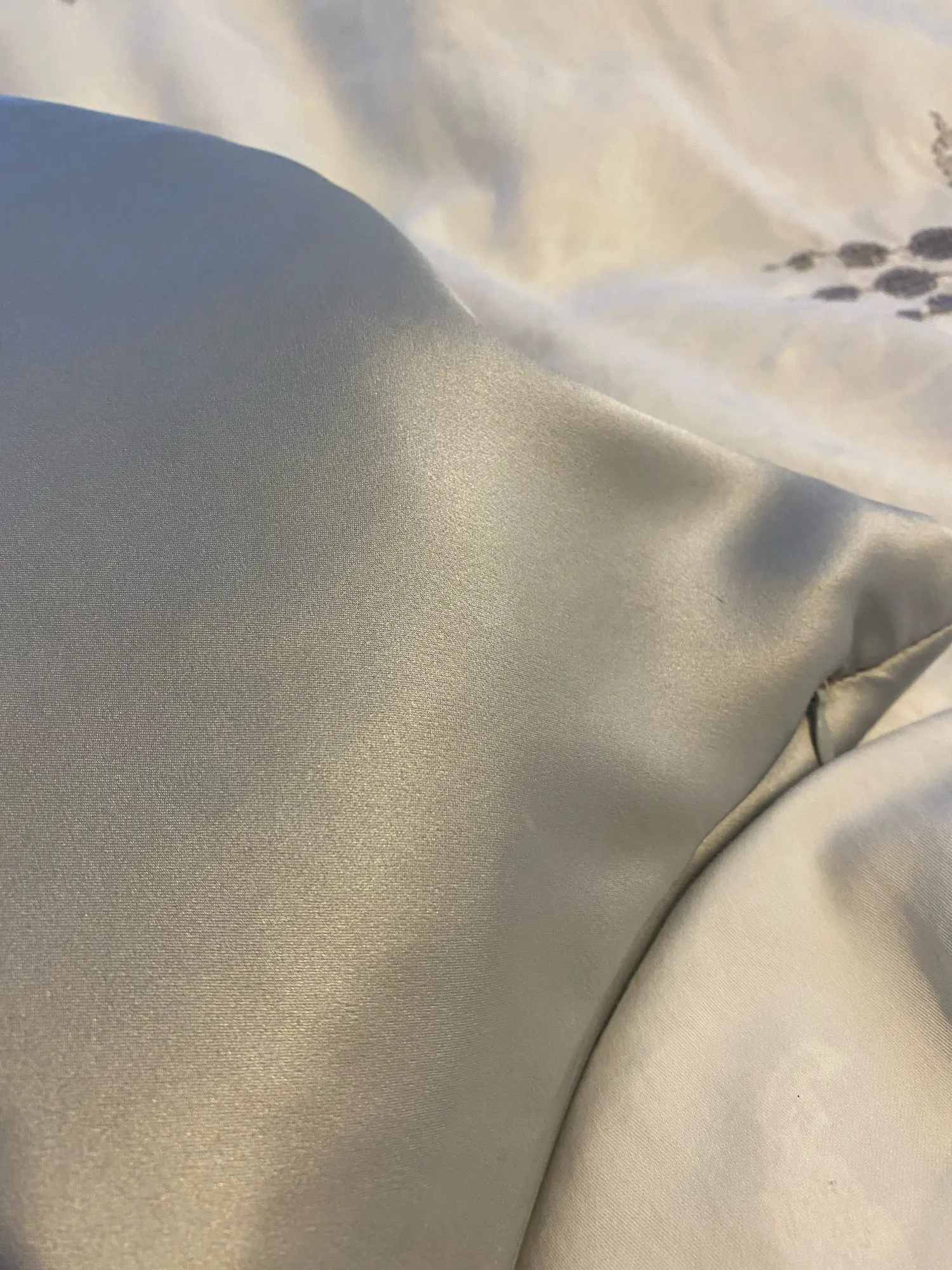 Потрясающие наволочки. Качество идеальное, ровные швы. Размер как и был заявлен 50*70. Очень приятные наощупь, хочется бесконечно к ним прикасаться. Фотография полностью не передаёт цвет. В живую он серебристо-серый. Ткань действитель шёлк, хорошего качества, плотный, не просвечивает. Продавец умничка - выполнил мою просьбу. Очень рада, что решилась на эту покупку.