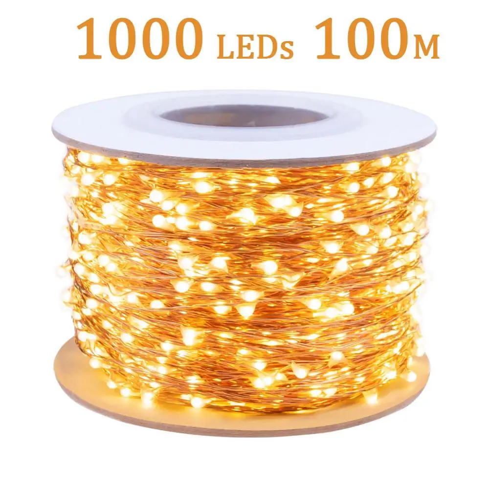 Самая длинная светодиодсветильник гирлянда, 100 м, уличная гирлянда, уличная садовая Рождественская сказочная декоративная лампа для спальни