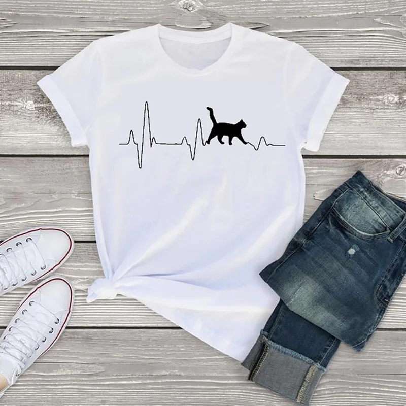 Футболка женская с принтом сердцебиения ЭКГ, с коротким рукавом, с ...