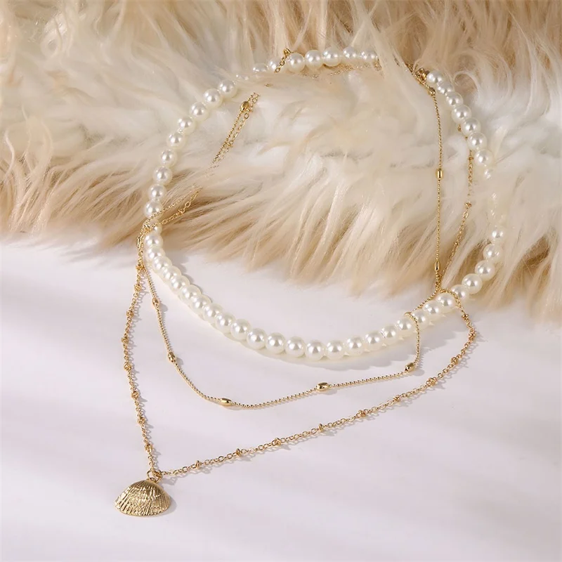 Модные многослойные ожерелья-Чокеры с подвеской в виде ракушки Vienkim Женские винтажные цепочки с жемчугом золотого цвета массивные ювелирные изделия