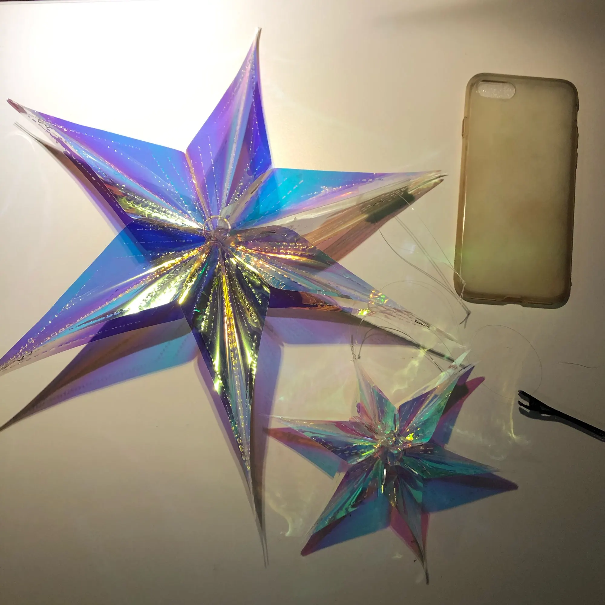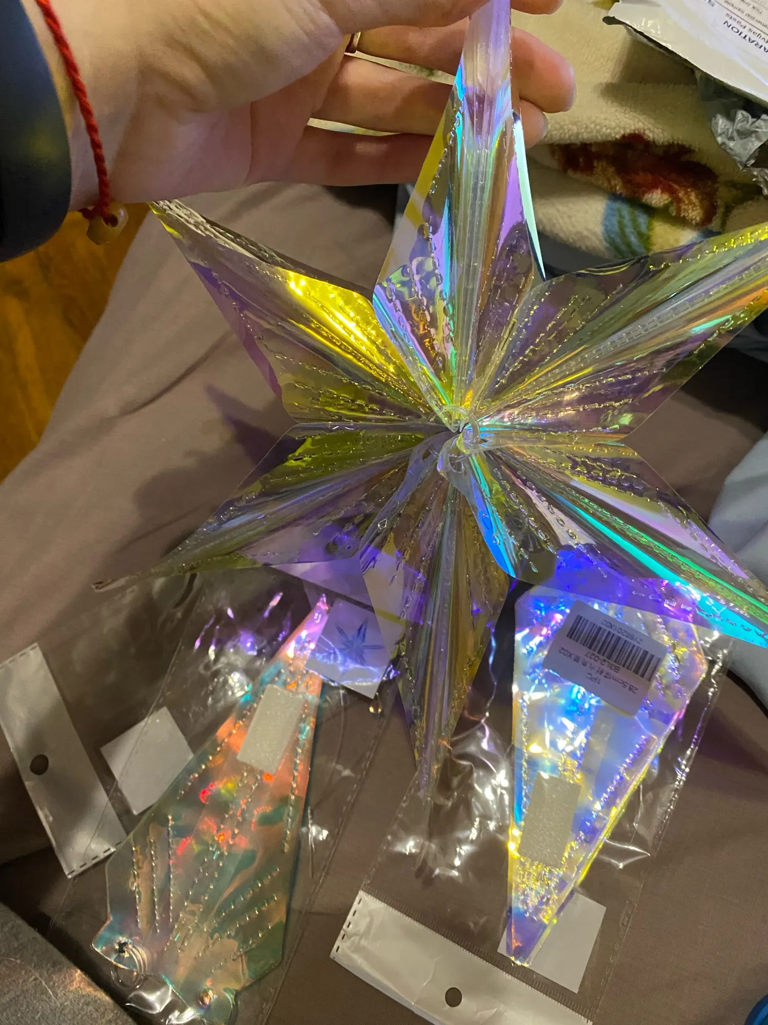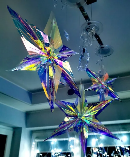 Миленькие малые звезды. Очень легко скрепляются и открепляются благодаря липучке (впервые вижу, чтобы она так использовалась, но идея неплоха). КАждая в своём пакете, перевозить легче легкого. Блестит и переливается волшебно