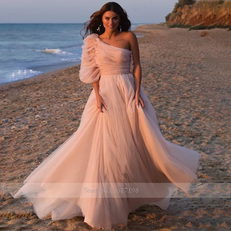 Простое свадебное платье на одно плечо 2022, свадебные платья на молнии со складками, свадебное платье до пола, свадебное платье с карманами