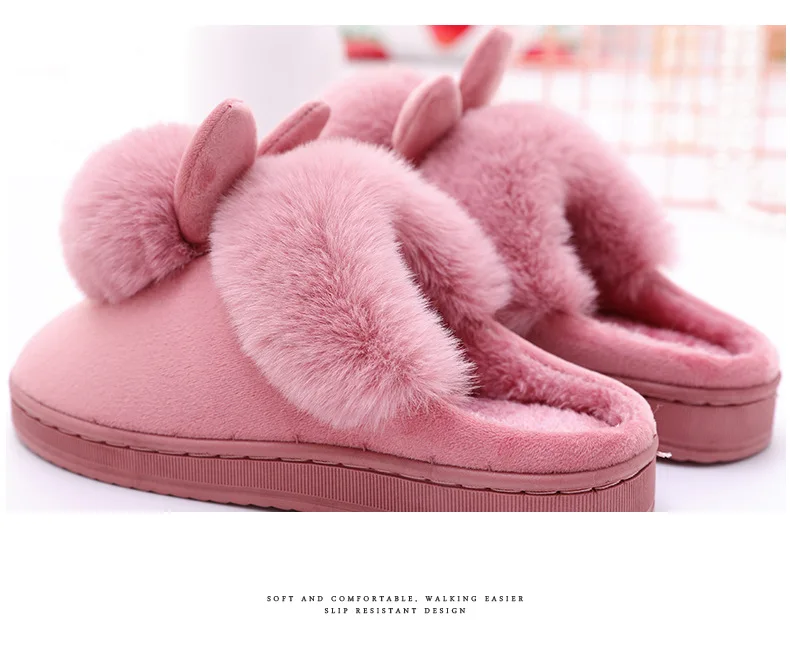 Тапочки женские осенне-зимние, хлопковые, с меховыми кроличьими ушками