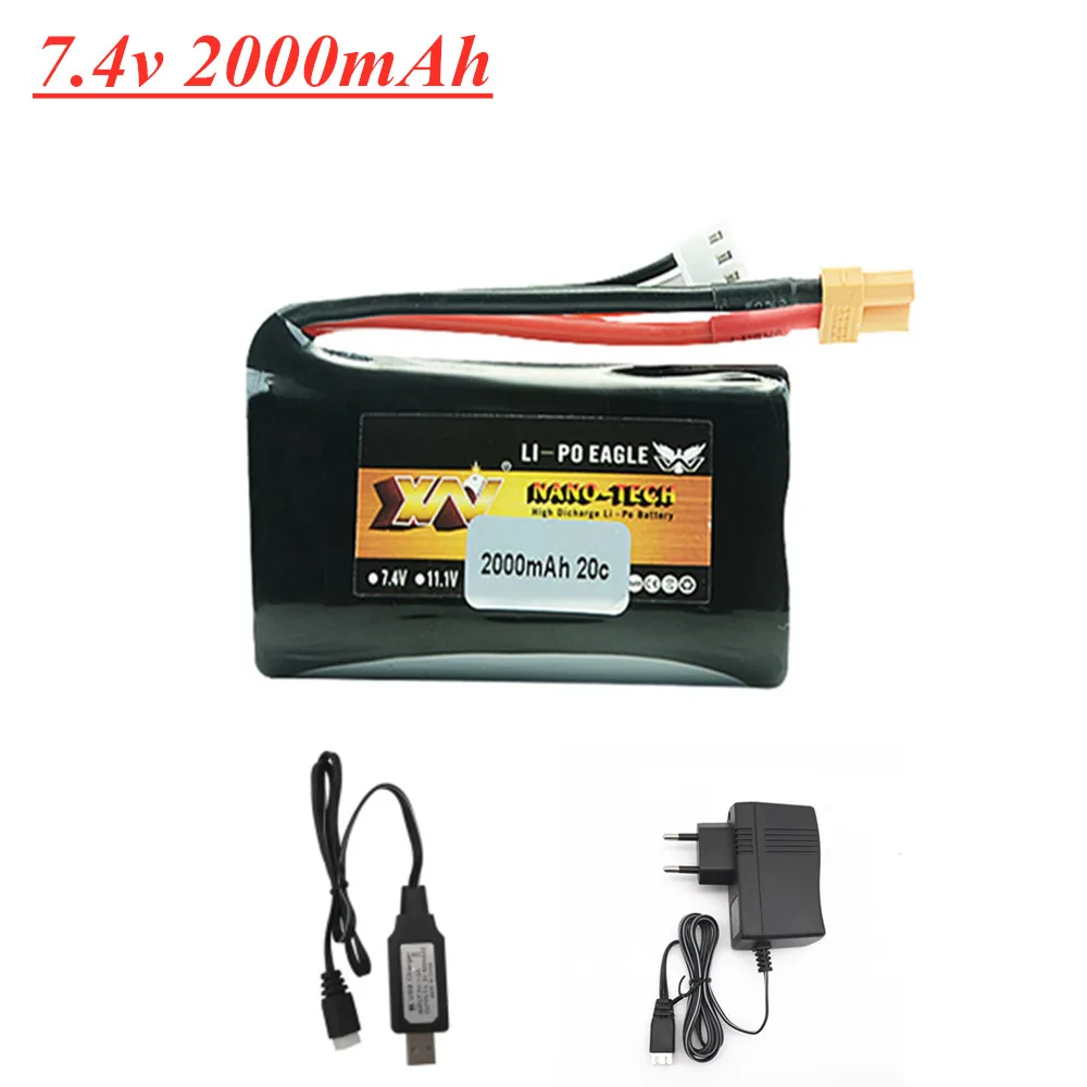 7,4 V 2000mAh 2S литий-ионный аккумулятор с зарядным устройством для Huina 580550 583 582 RC автомобилей Дрон запасные части 18650 7,4 v батарея XT30 разъем