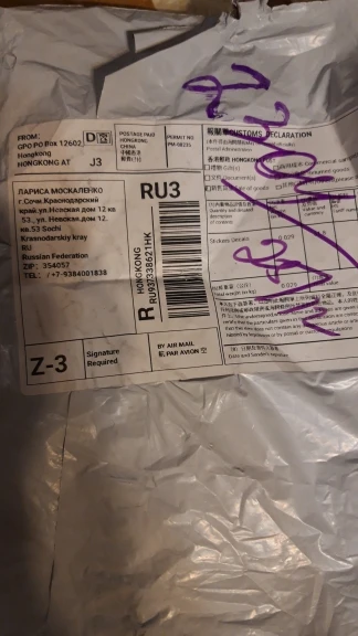 Страна: RU Color: 3 Доставка: Cainiao Super Economy 10.02.2021