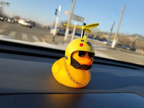 Милая маленькая Желтая утка со шлемом, пропеллеры, резиновая ветровка, утка, Сжимаемый звук, внутреннее украшение автомобиля, детская игрушка