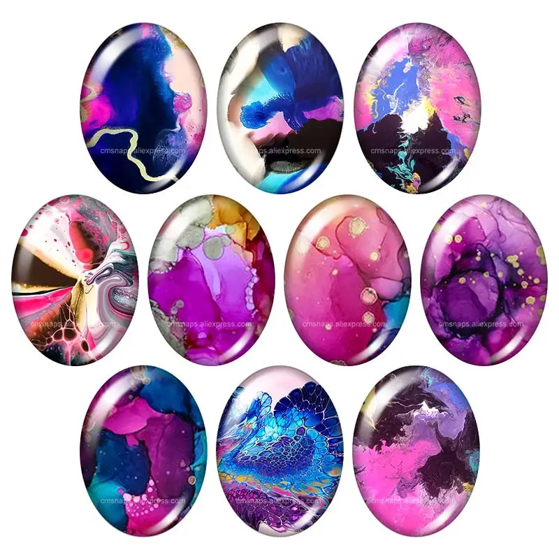 Градиентные цветные градиентные узоры, овальные цветы в горошек, 18 х2, 5 мм30 х40 мм, смешанный стеклянный кабошон для демонстрации плоской задней части, ювелирные изделия