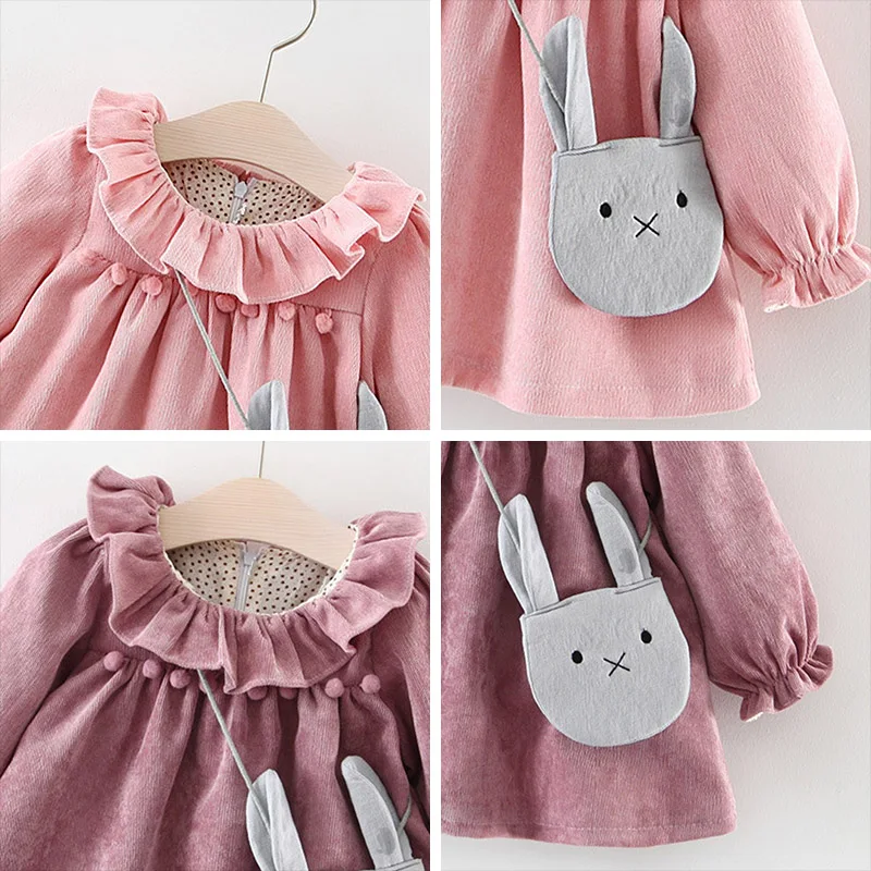 Bear LeaderОсенняя однотонная Одежда для девочек милые платья из чистого хлопка с бабочками для маленьких девочек платье принцессы из 2 предметов с сумочкой в виде кролика